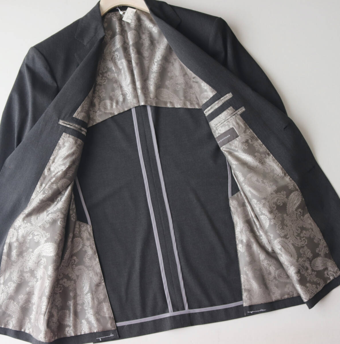69,300円円新品タグ付き【KASHIYAMA】綺麗な裏地ペイズリー柄 段返し3Bシングルスーツ M 濃灰 v7568 收藏