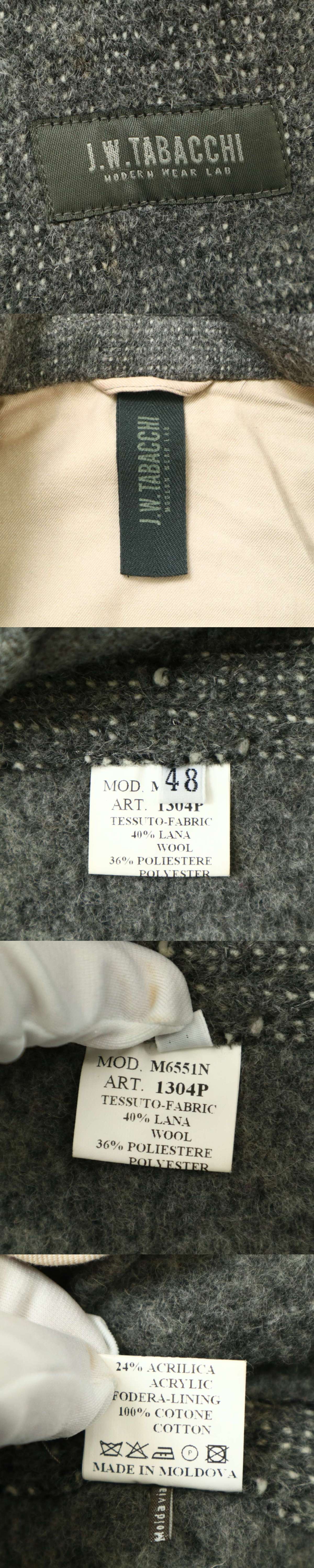 J.W. TABACCHI ジェイダブリュータバッキ 秋冬 ウール混★ ピーコート ダブル Pコート Sz.46 メンズ 灰 收藏