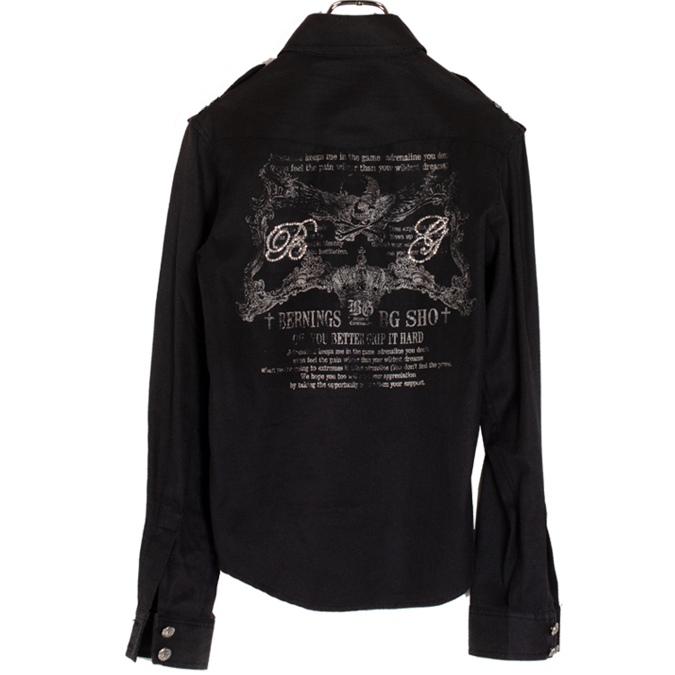 Bernings Sho BLACK LABEL 長袖シャツ シャツジャケット メンズ ブラック 刺デザイン スカル ラインストーン お兄系 Y2K 收藏