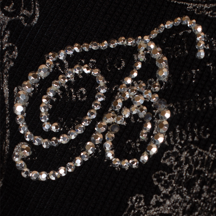 背面にはスカルとラインストーンが印象的なデザインで個性的なスタイルを演出します。