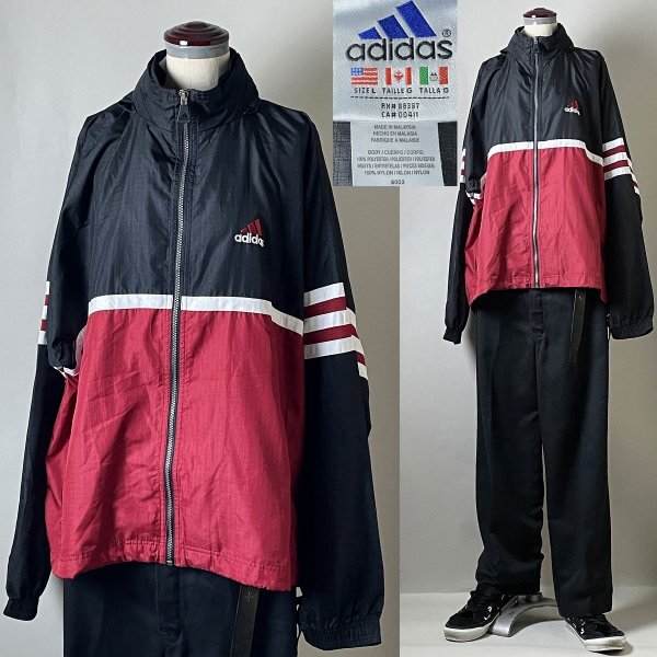 | : ★【80年代 マレーシア製 オーバーサイズ】 万国旗タグ ビンテージ ADIDAS アディダス パフォーマンスロゴ フード付き ナイロン ジャケット L | ||||