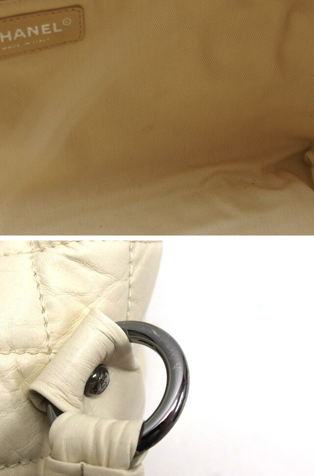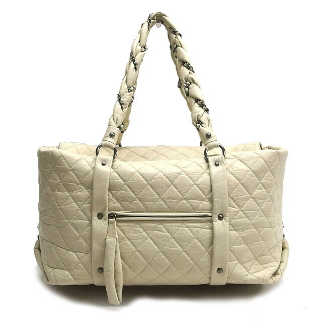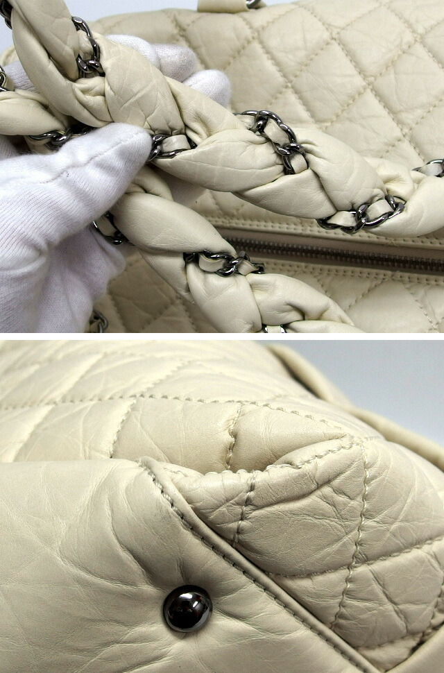 | 商品名 | [訳あり]マトラッセ ラムスキン チェーン ボストンバッグ ショルダーバッグ アイボリーホワイト(クリーム) シワ加工 ファスナー開閉 ダイヤステッチ シルバー金具 ギャランティカード無し スクエア型 肩掛け レディース |