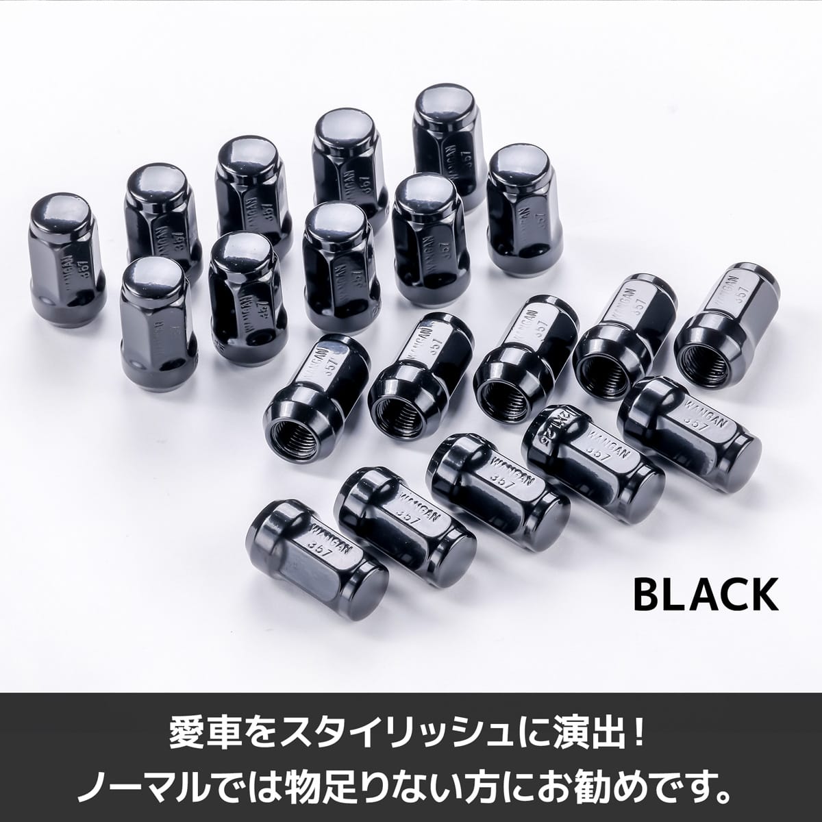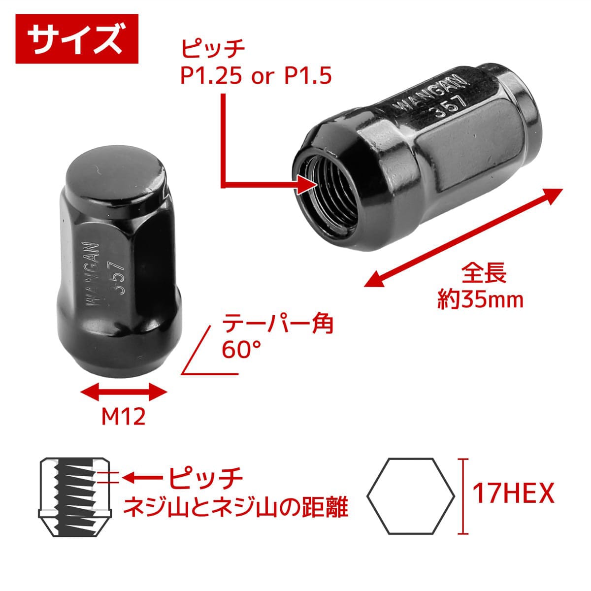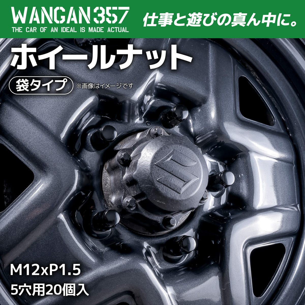WANGAN357 ホイールナット 袋 黒 ブラック スチール 17HEX M12×1.5 テーパー 35mm 20個入り 5穴 收藏