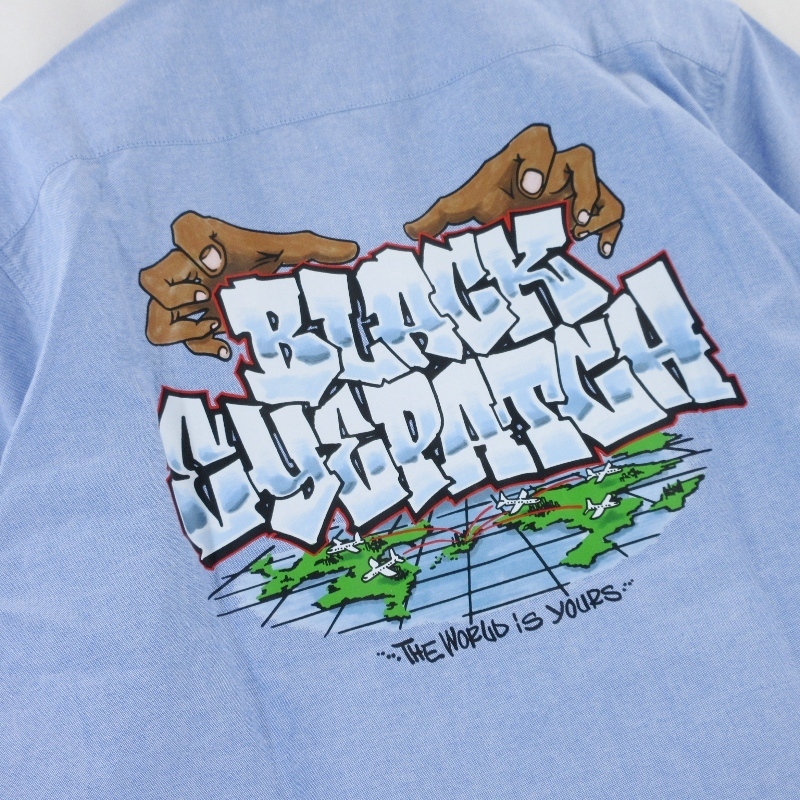 未使用 BLACKEYEPATCH ブラックアイパッチ WORLD IS YOUR S/S OXFORD SHIRT BEPSS25TP27 半袖シャツ ライトブルー L タグ付き 70017028 收藏
