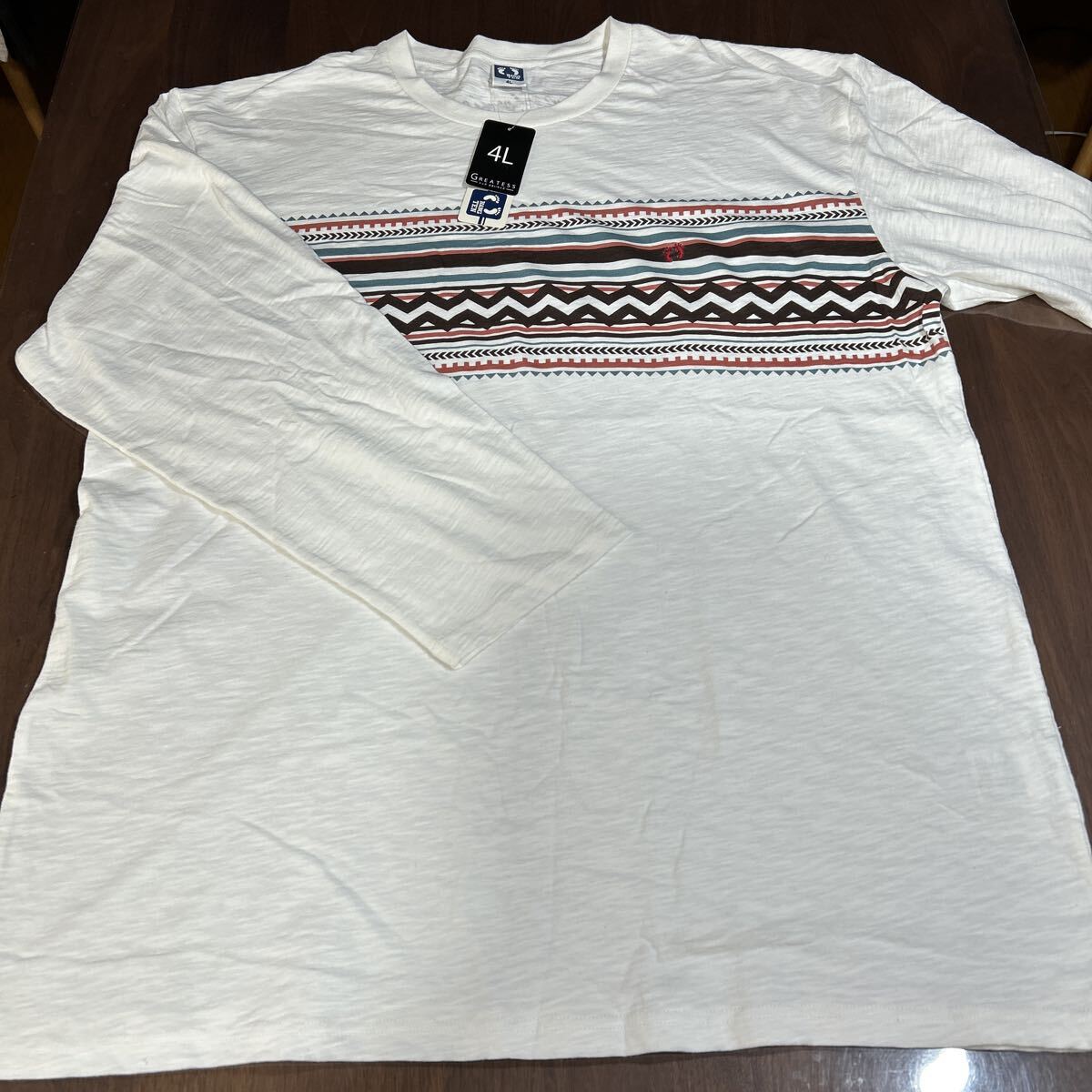 未使用 HANG TEN 大きいサイズ 4L 長袖 Tシャツ ロンT 白 ロゴは刺繍 バックは首下ワンポイント ハンテン コットン100% カットソー 收藏