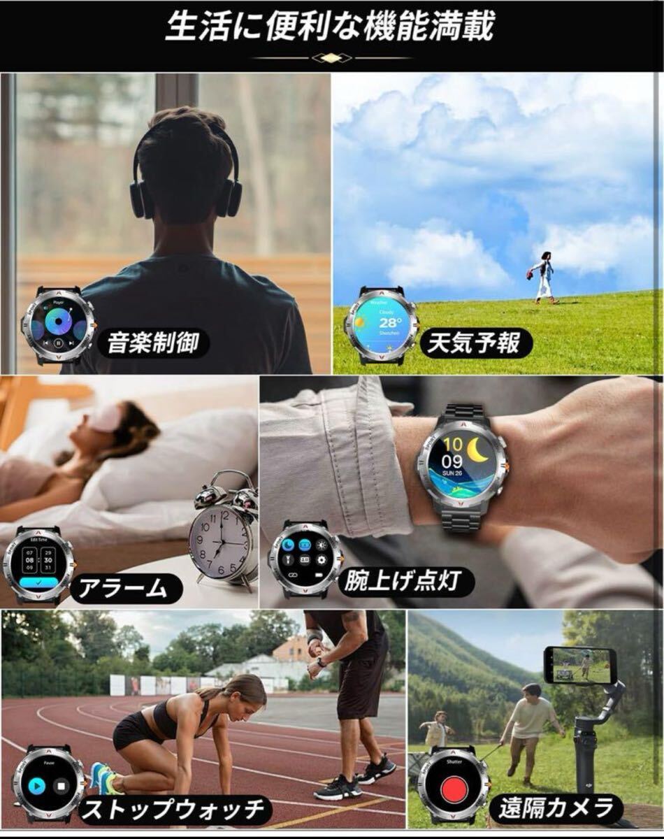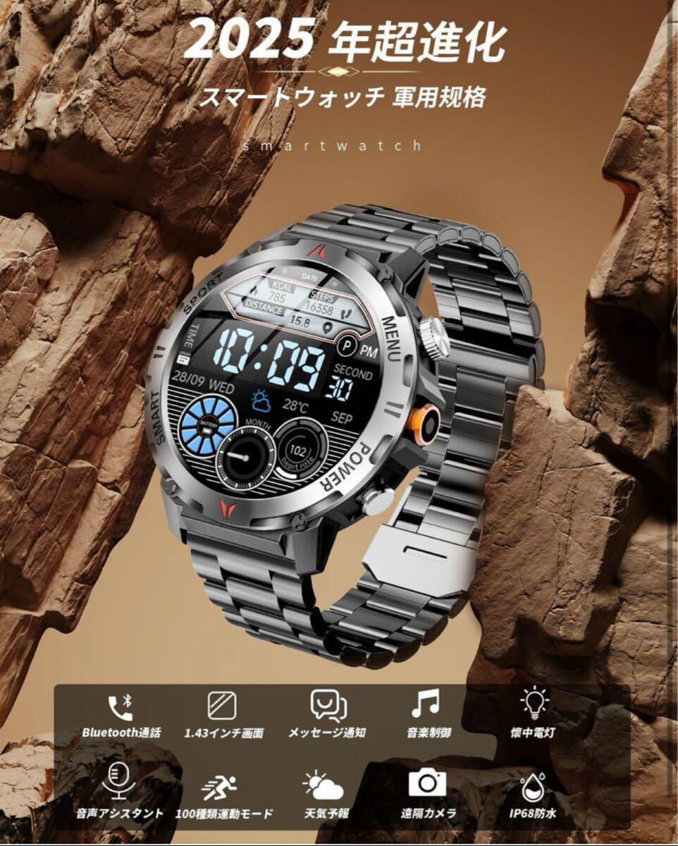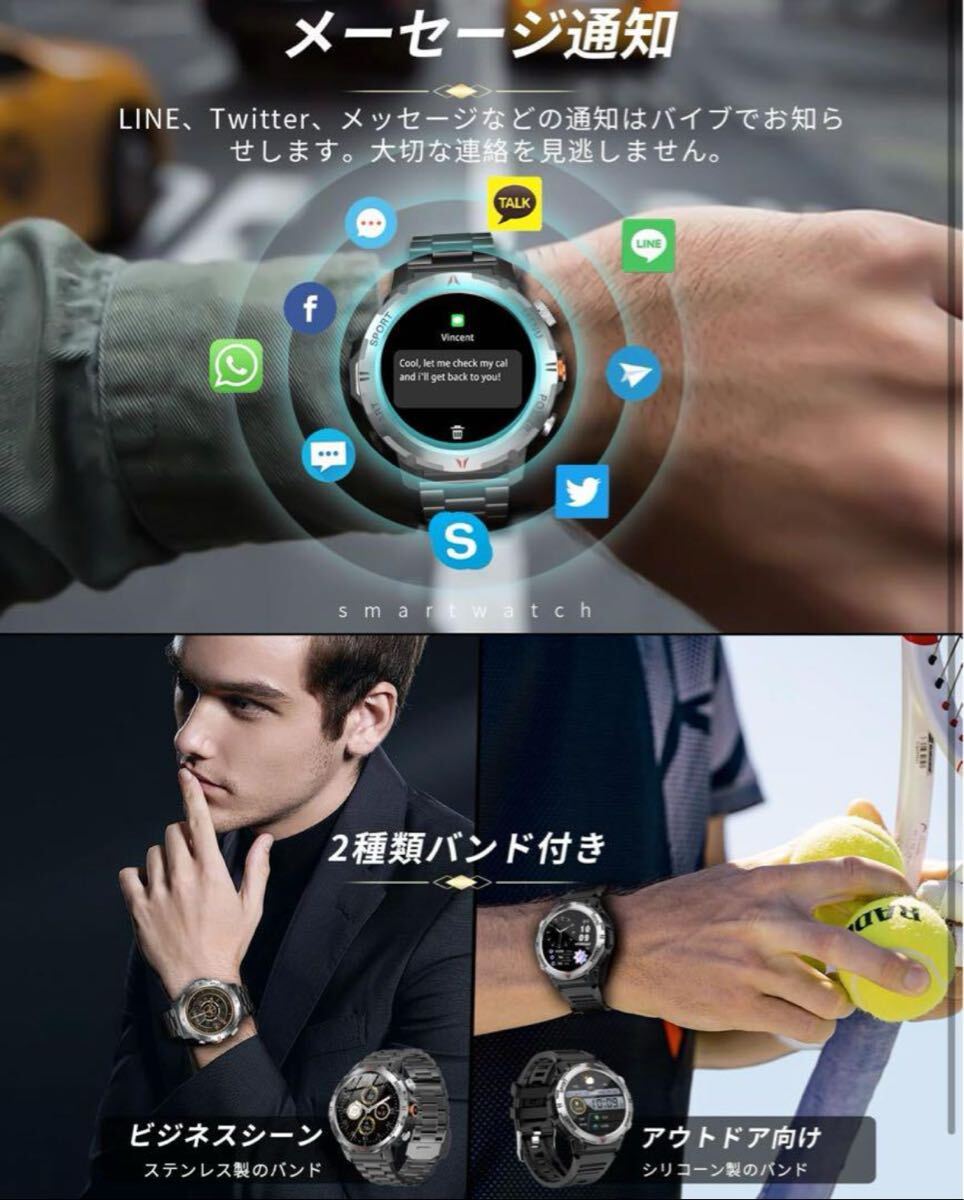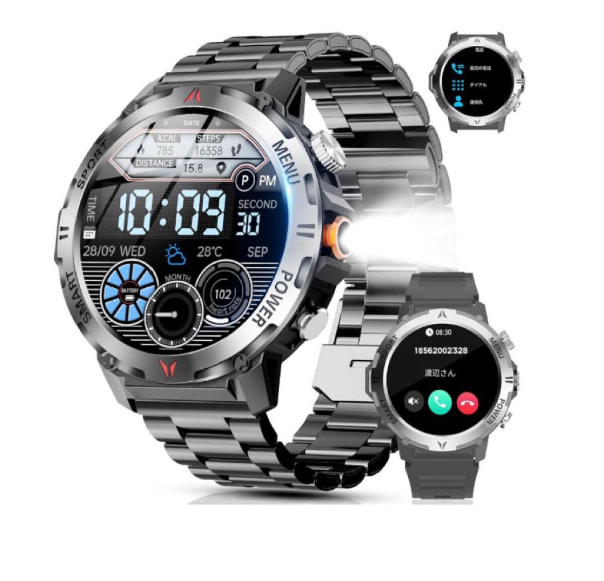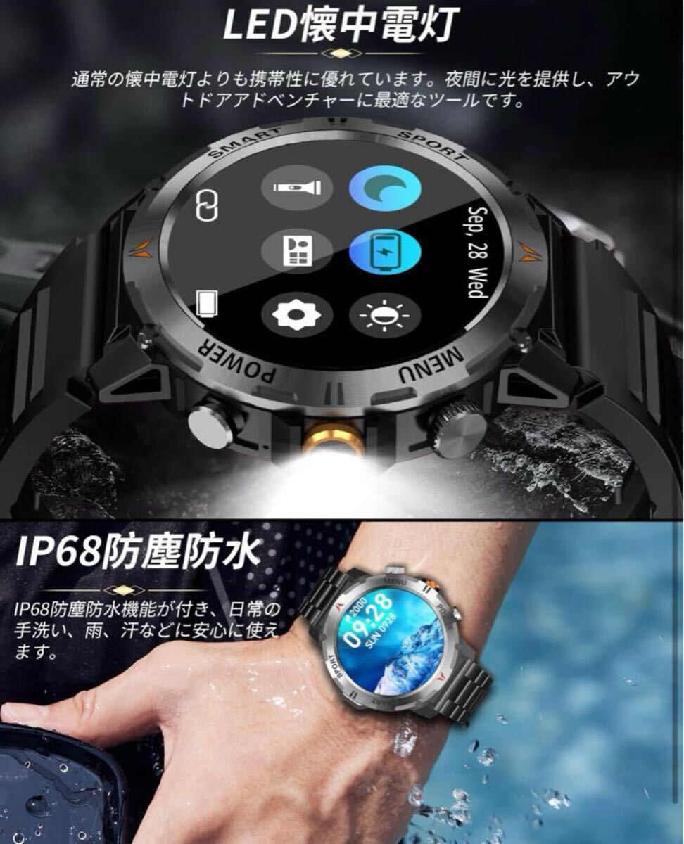 48 スマートウォッチ丸型 X21 iPhone Android 軍用規格 スマートウォッチ 防水 懐中電灯 腕時計 收藏