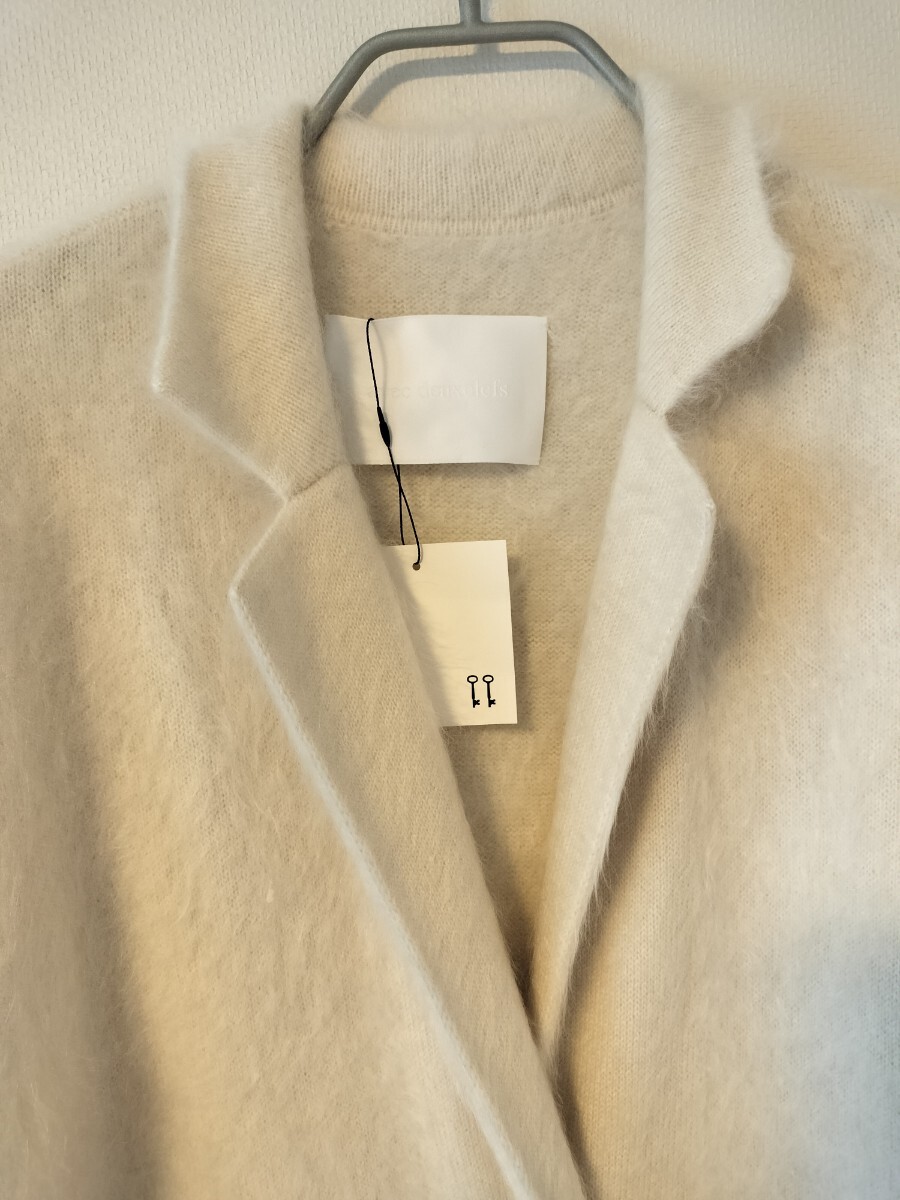 【25AW/新品未使用タグ付き商品】avec deuxclefsアヴェクデュクレ★ファーカシミヤニットコート★ホワイト★サイズフリー 收藏