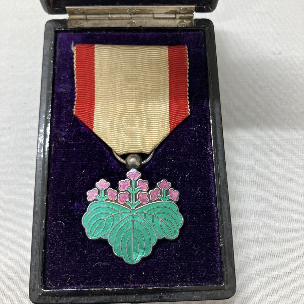 勲章 旧日本軍 記章 徽章 当時物 アンティーク コレクション 勲七等青色桐葉章 日本軍 レトロ 昭和 骨董 ケース付き 收藏