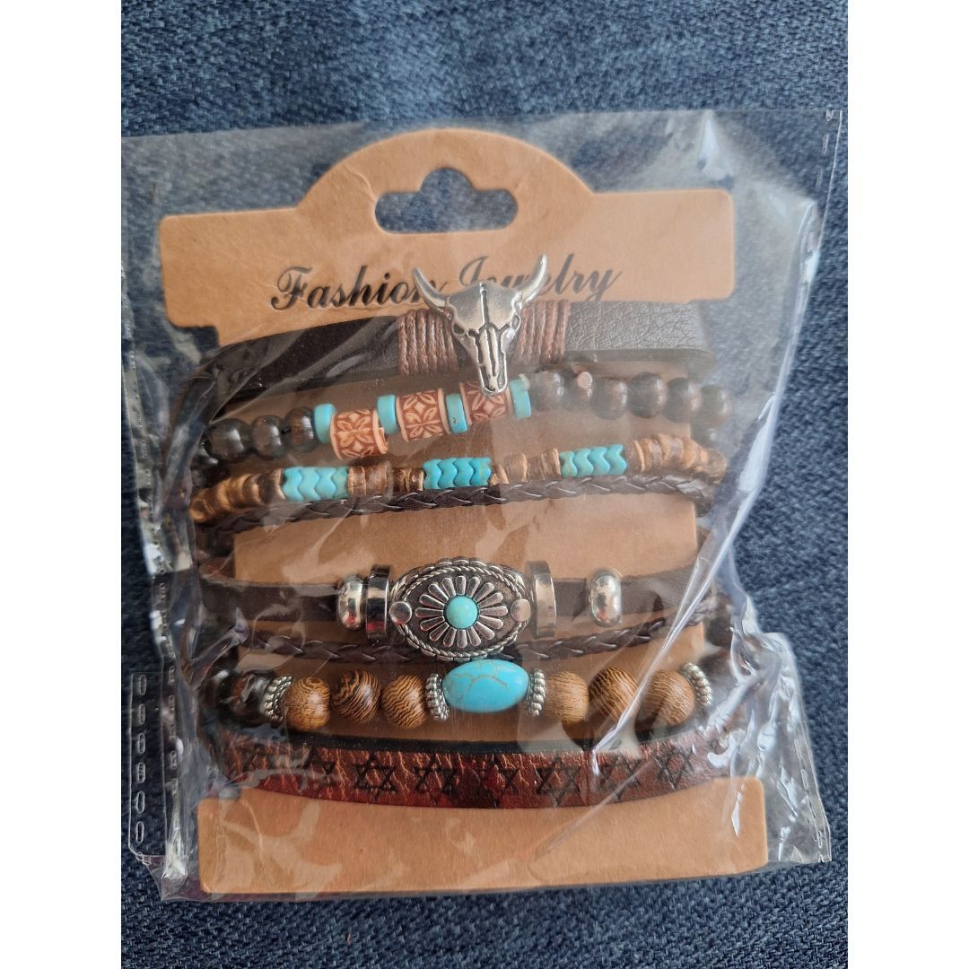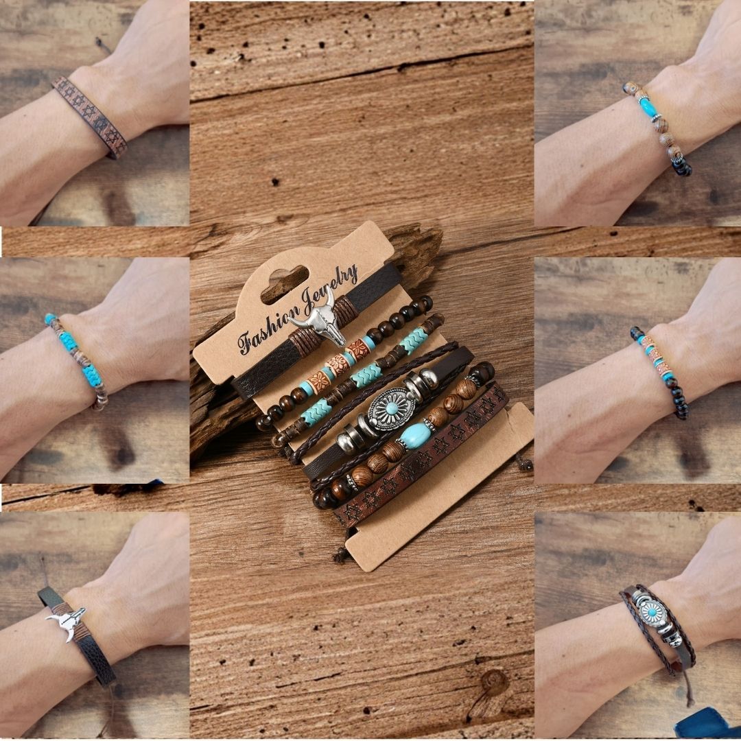 ヴィンテージ風 ターコイズ ブレスレット レザー ブレス アメカジ メンズ インディアン ストリート ファッション Y2K 革製 ペア 男女兼用 收藏