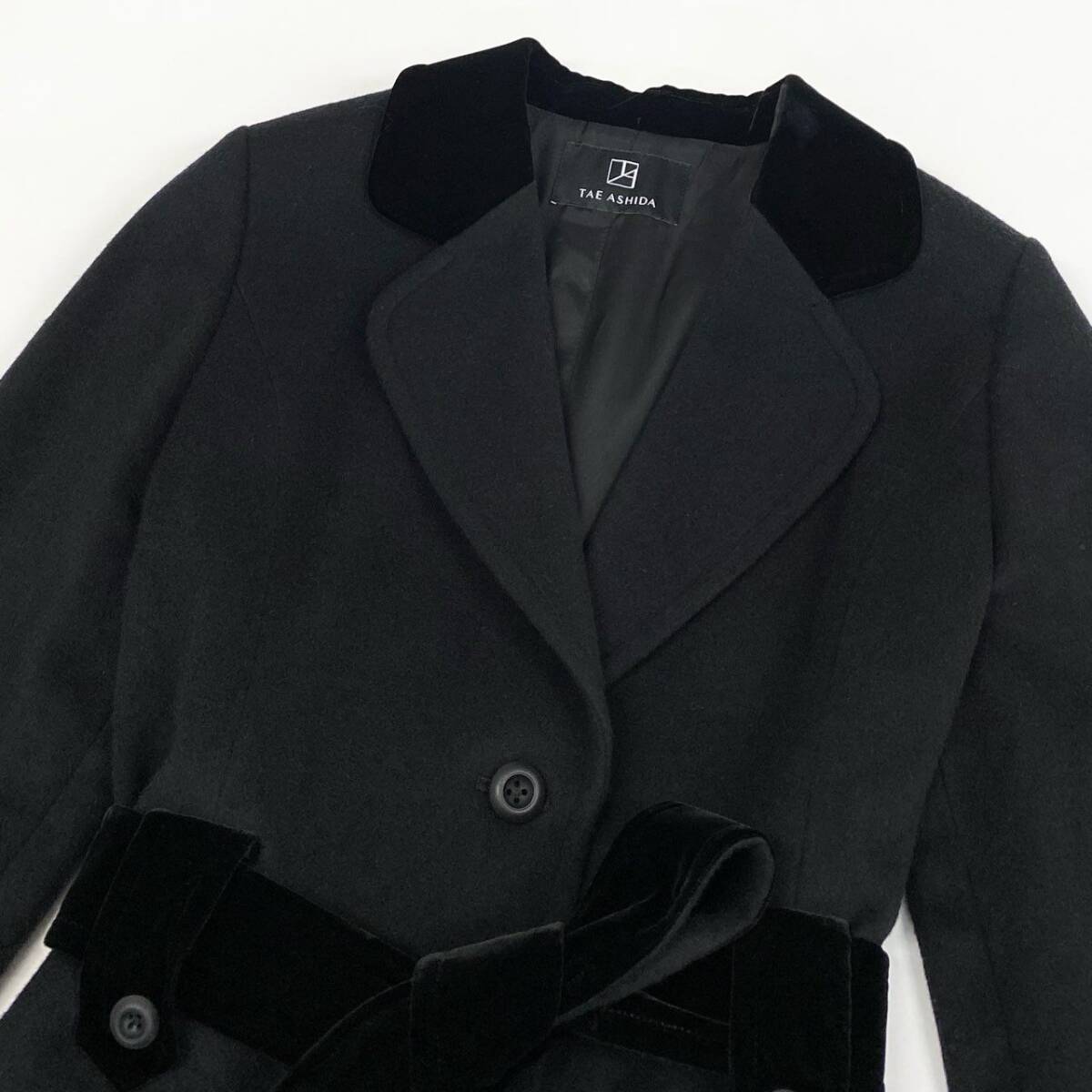 57j17《美品》TAE ASHIDA タエアシダ チェスターコート アウター ベルベット ウール ベルト付き TC9706 11サイズ ブラック レディースu02t 收藏
