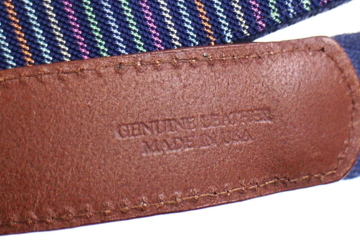 ★USA製 Donald Ross 織り柄 マルチストライプ レザー×コットン ベルト ネイビー 34★オールド ラグ柄 ゴルフ ダック キャンバス 收藏