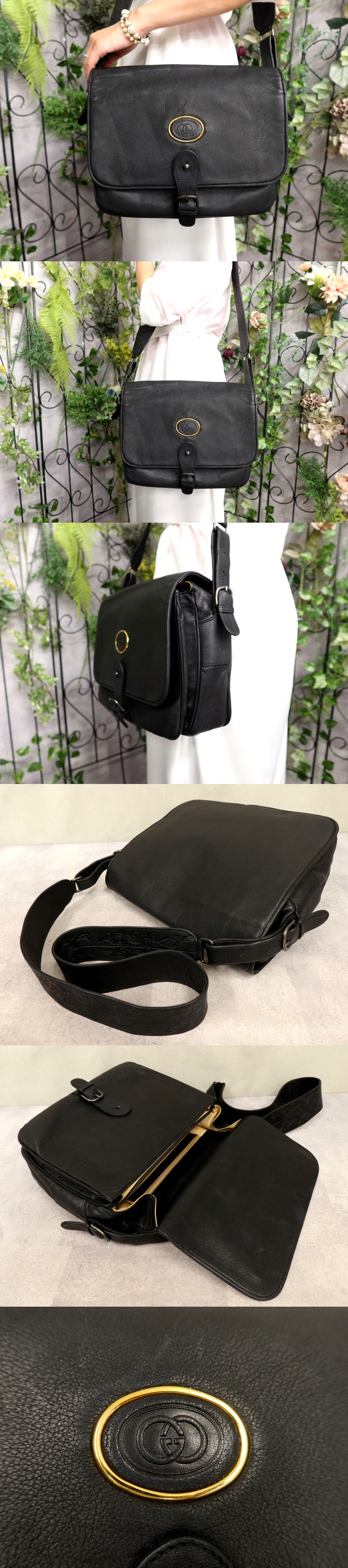 超美品●GUCCI オールド グッチ●ロゴ型押し●カーフ レザー 本革●ショルダー バッグ●黒●G金具●イタリア製●ヴィンテージ●B5●Js61316 收藏
