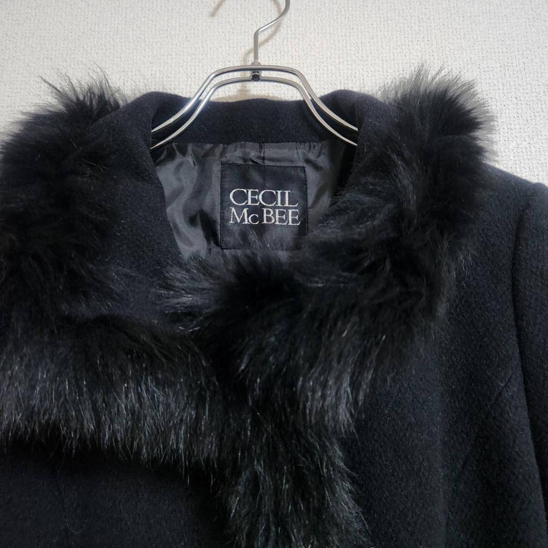 CECIL McBEE ロングコート M 黒 フォックスファー 高級感 秋冬 收藏