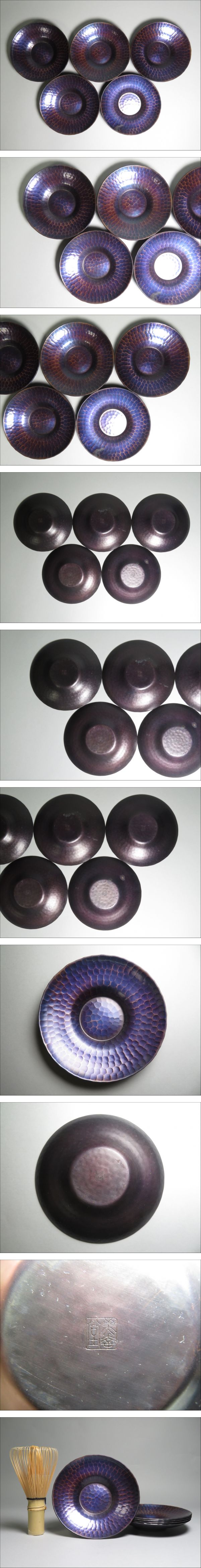 | 時代物 美幸堂 銅製 紫銅鎚目 茶托 五客 茶道具 | |||