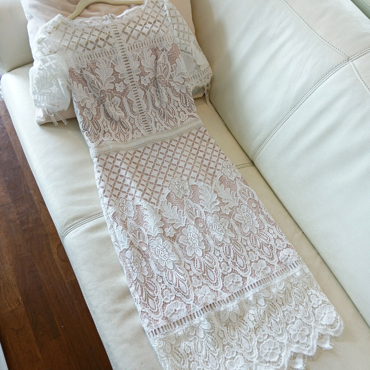 タダシショージ TADASHI ホワイトレース 半袖 ミモレ丈 ワンピース 白 パーティー カクテル 記念日 收藏