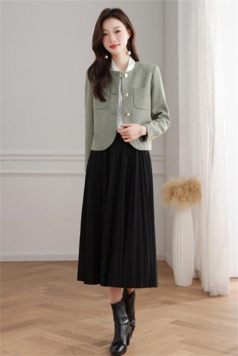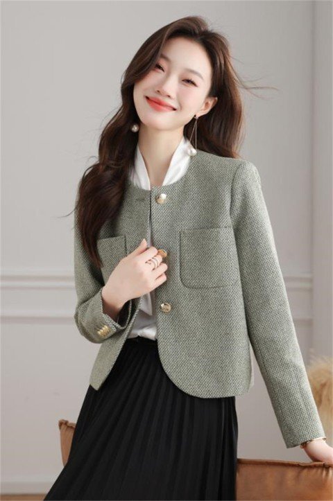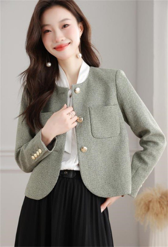 ジャケット ショート丈トップス 羽織 長袖 上品 きれいめ おしゃれ フェミニン ラウンドネック お出かけ S グリーン 收藏