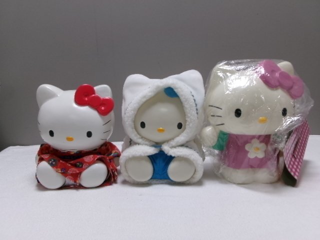 K04/コレクター放出/【世界のハローキティコスチュームバンク (日本 カナダ) キティ小物入れ まとめて計3点】キティ/貯金箱 收藏
