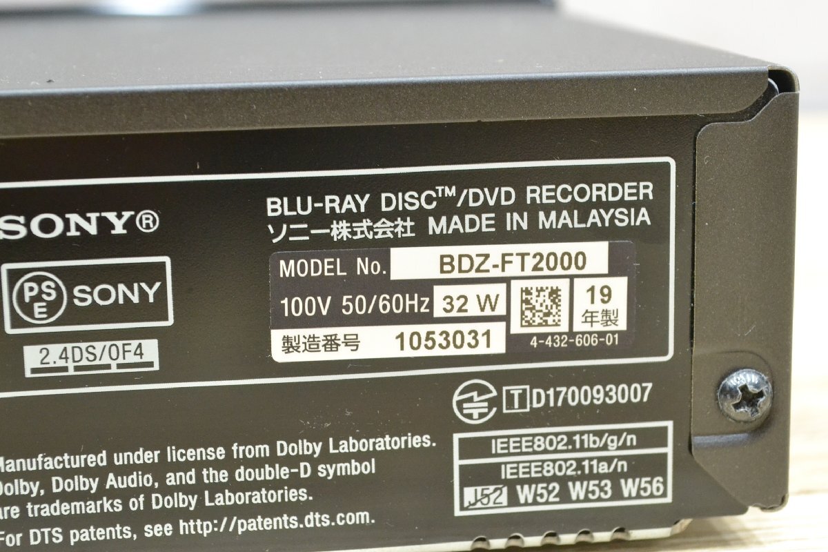 k1203■SONY ソニー■ブルーレイレコーダー リモコン付き■BDZ-FT2000■2019年製 收藏