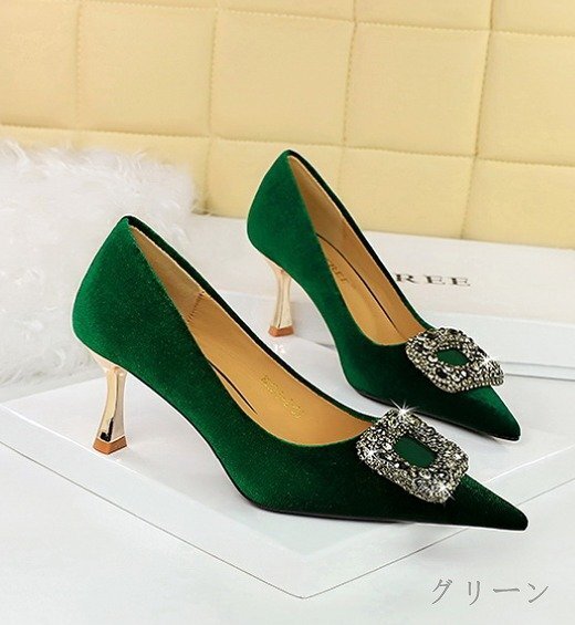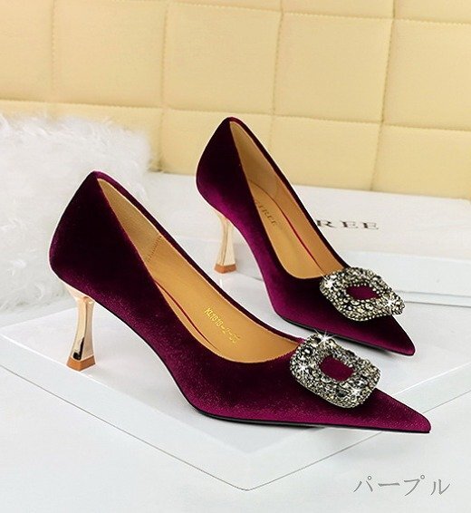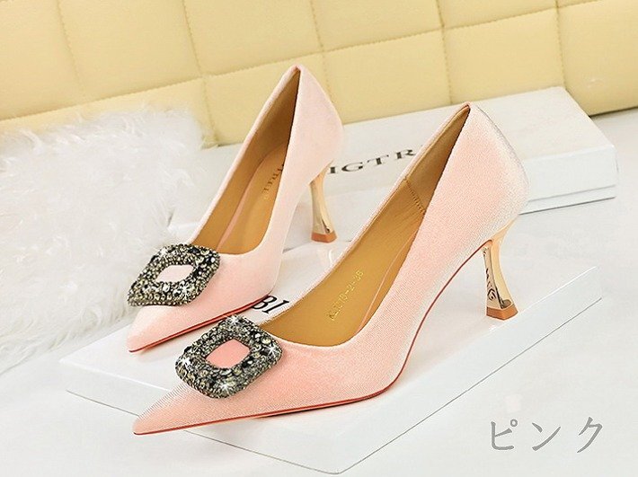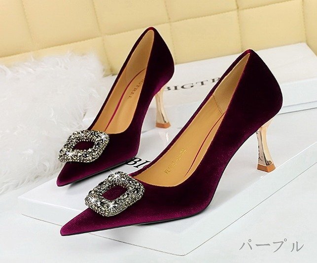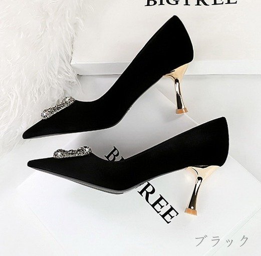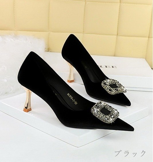 【高品質】全4色 スリッポン ローファー モカシン とんがりトゥ ラインストーン付 sweet系 38 ブラック 收藏