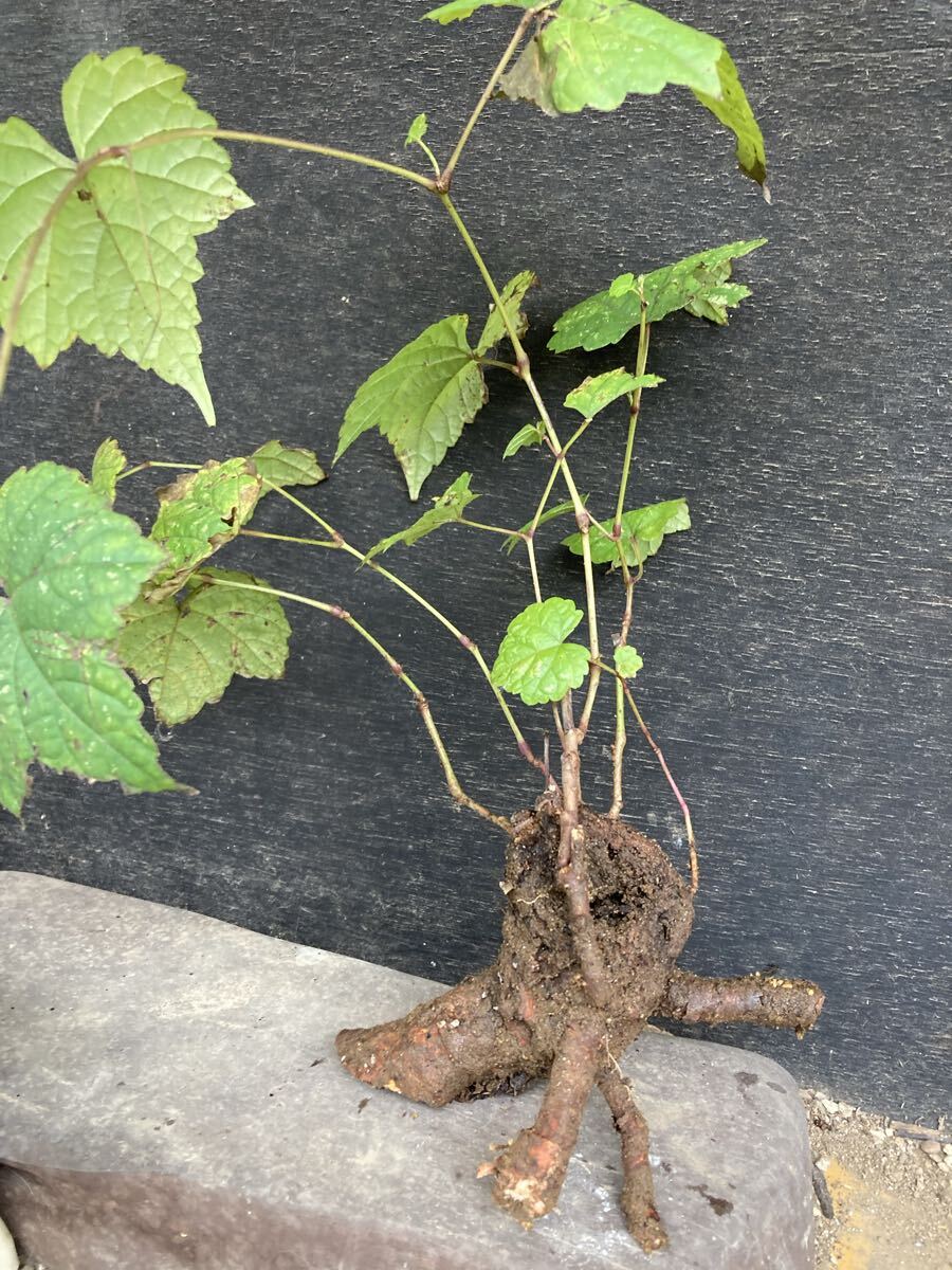 ノブドウの古株を掘り上げたものです。かなりの古株で盆栽の素材として最適です。ノブドウは挿し木でも増えますので今後太い根に細根が出てくることを期待しています。先行投資のつもりで育ててみませんか?10月23日の写真です。