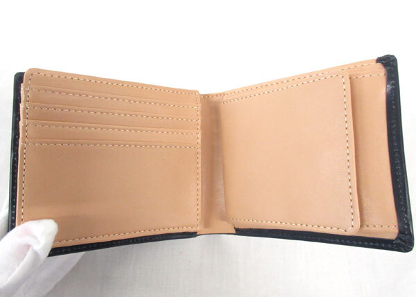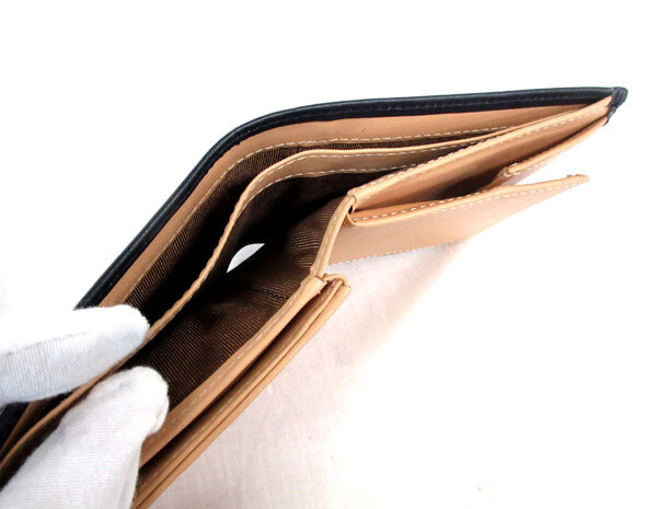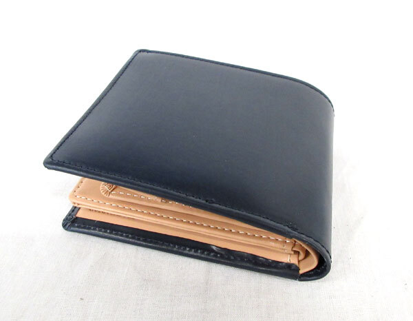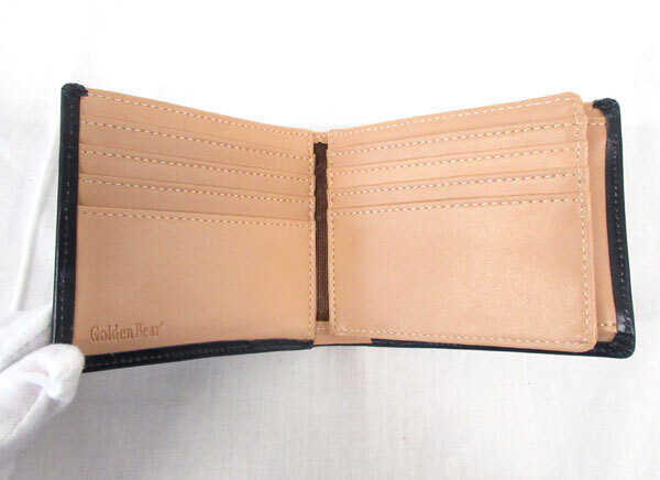 送料300円(税込)■vb109■メンズ ゴールデンベア 牛革 二つ折り財布 ネイビー 7680円相当【シンオク】 收藏
