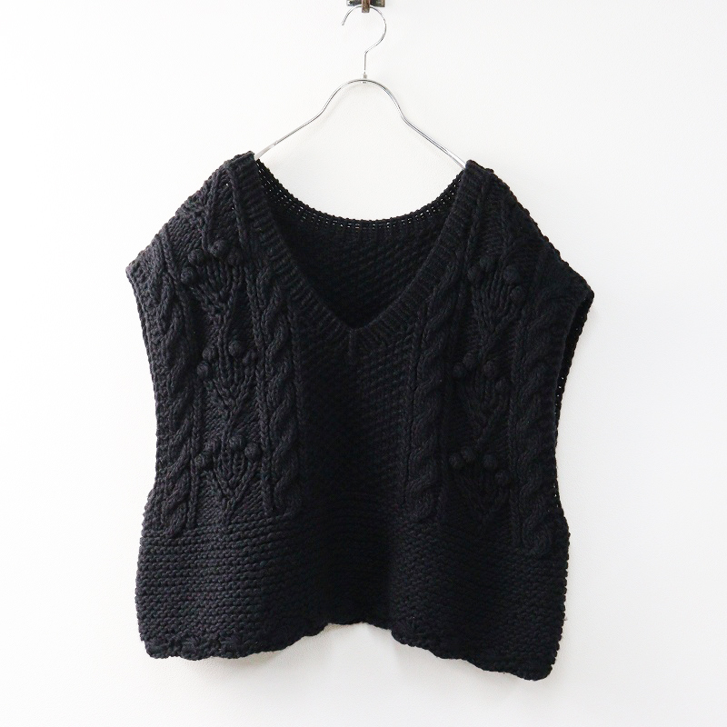 2024AW ネストローブ nest Robe ペルーボッブルニットベスト F‖ブラック ジレ ざっくり ケーブル Vネック ノースリーブ【2400014667691】 收藏