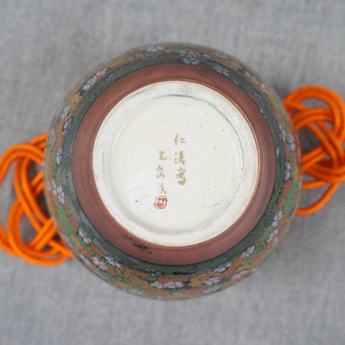 | 玉泉堂 「色絵吉野山図茶壺の写」 高さ19.5cm 直径15cm 共箱 栞 九谷焼窯元 玉泉堂 茶壺錦 茶入 真作保証 うぶ出し | ||