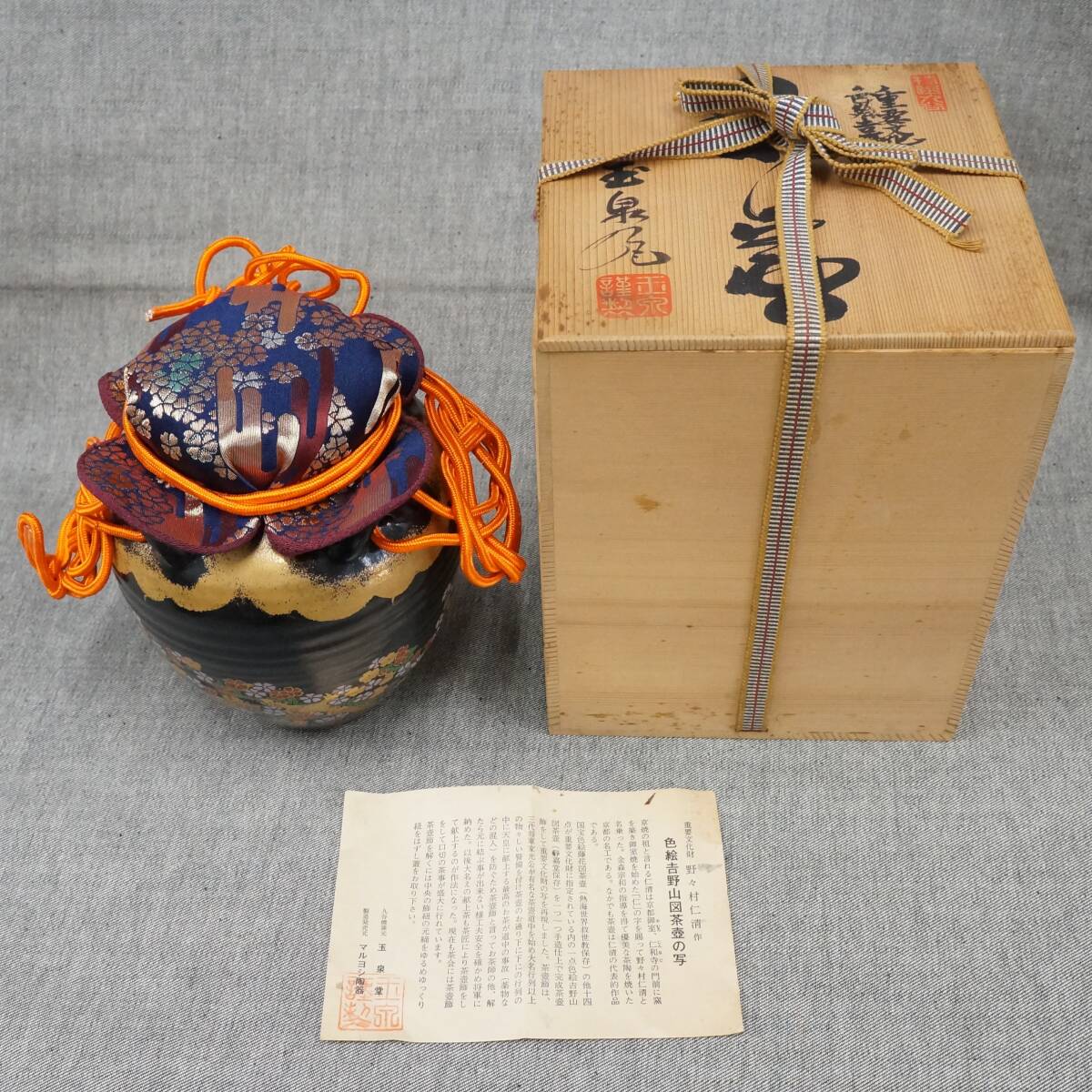 玉泉堂 「色絵吉野山図茶壺の写」 高さ19.5cm 直径15cm 共箱 栞 九谷焼窯元 玉泉堂 茶壺錦 茶入 真作保証 うぶ出し 收藏