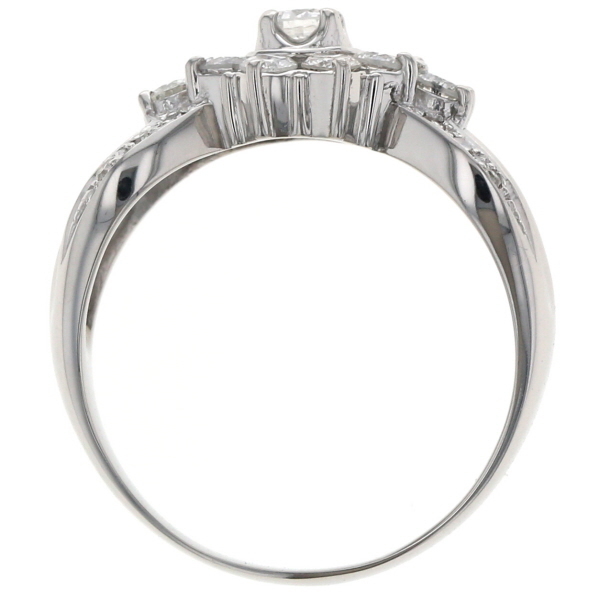 Pt900 プラチナ リング ダイヤモンド 1.00ct フラワー 花 リボン ライン 絞りアーム 取り巻き 指輪 18号 【新品仕上済】【zz】【中古】 收藏