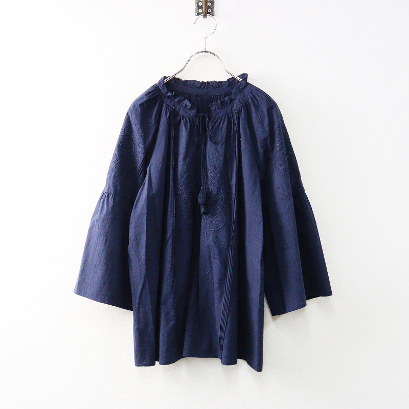 美品 定価64900円 2025年 レリアン ホワイトレーベル Leilian WHITE LABEL 刺繍フレアスリーブブラウス 9 ネイビー┃【2400014659085】 收藏