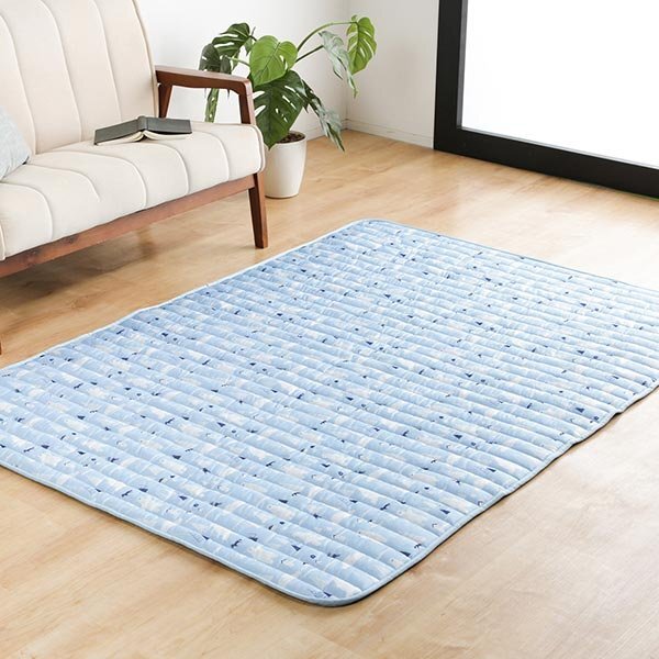 ラグ ラグマット ひんやり 接触冷感ラグ 130×185cm 1.5畳 キルト加工 洗える ひんやりラグ ボーダー柄 冷感 長方形 收藏