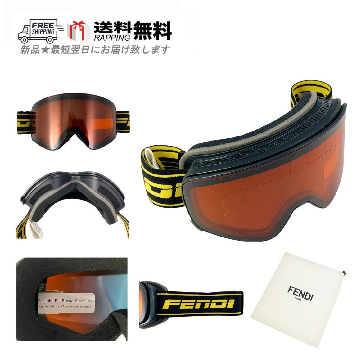 I784.. FENDI フェンディ スキーゴーグル ロゴ イタリア製 FAH032 AEQR F1COQ ★ オレンジ 收藏