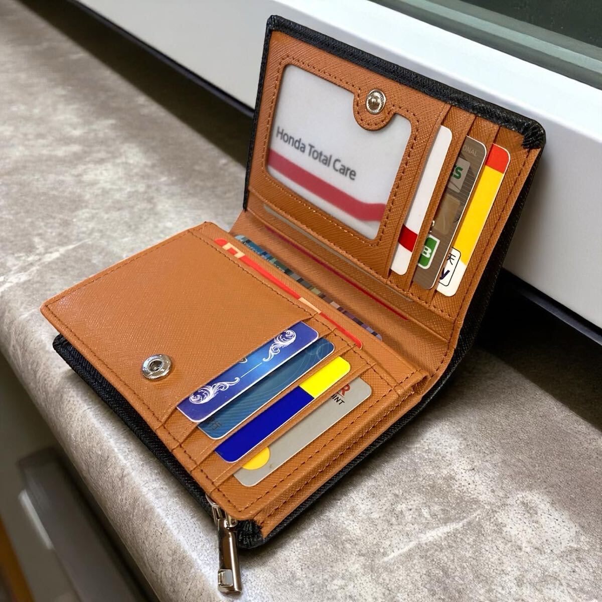 スプリットレザー 二つ折り財布 大容量 黒茶 メンズ レディース 小銭入れ 收藏
