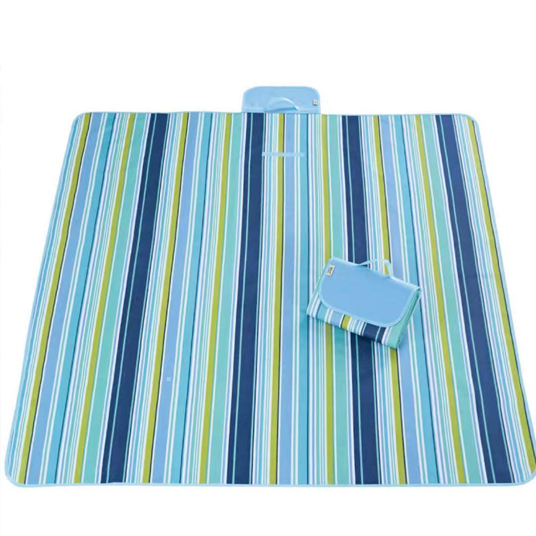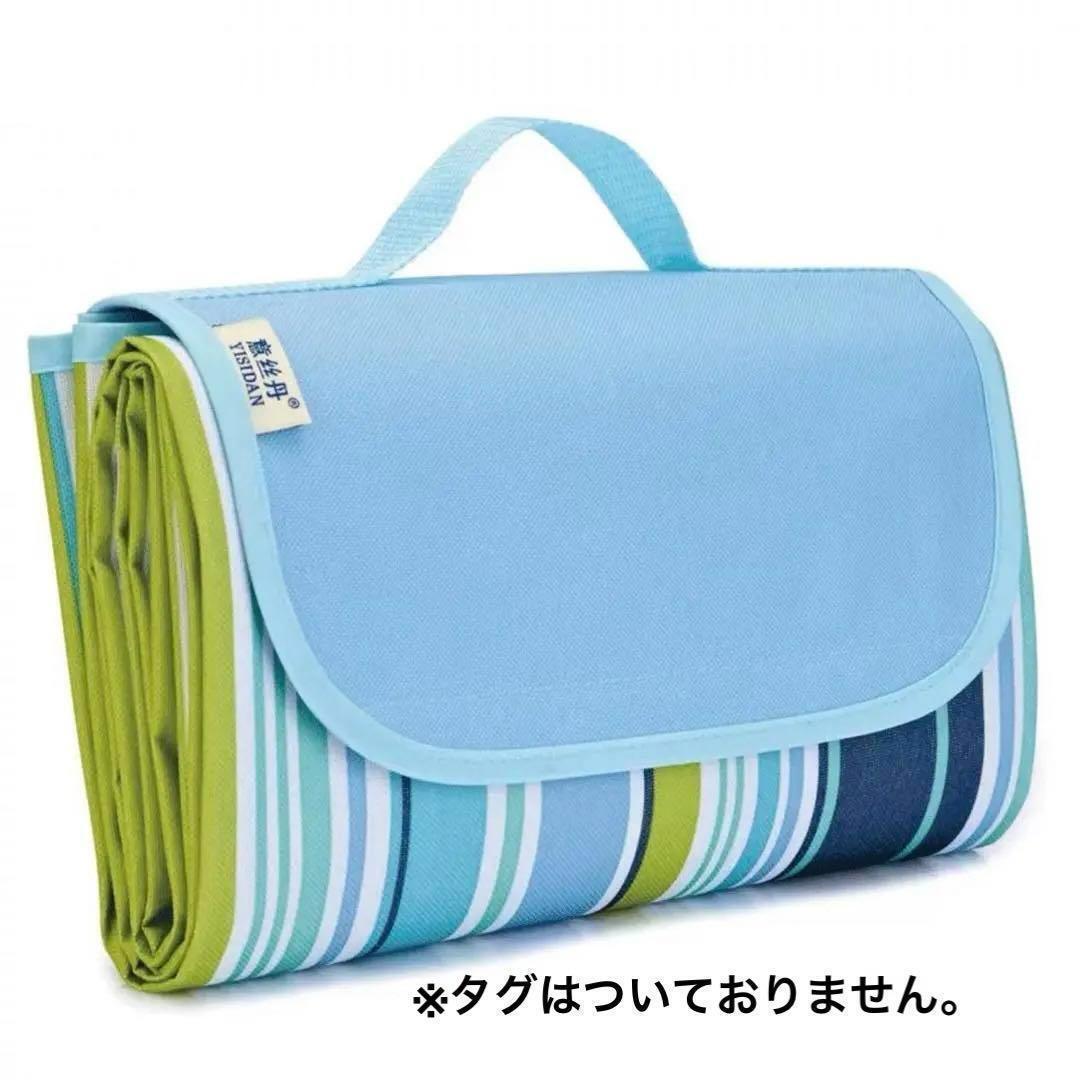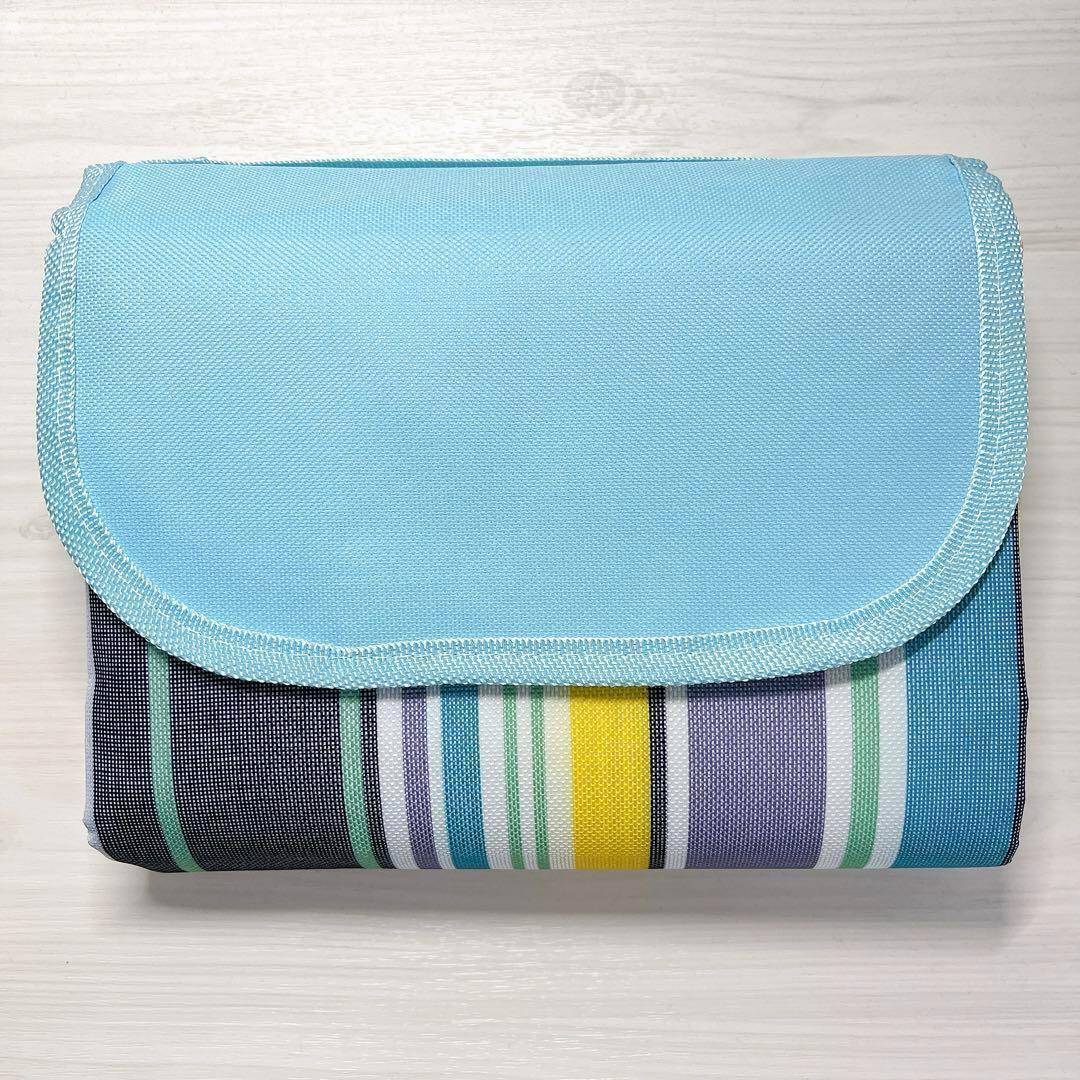 青色 ストライプ レジャーシート 大判 コンパクト 防水 撥水 折りたたみ 收藏