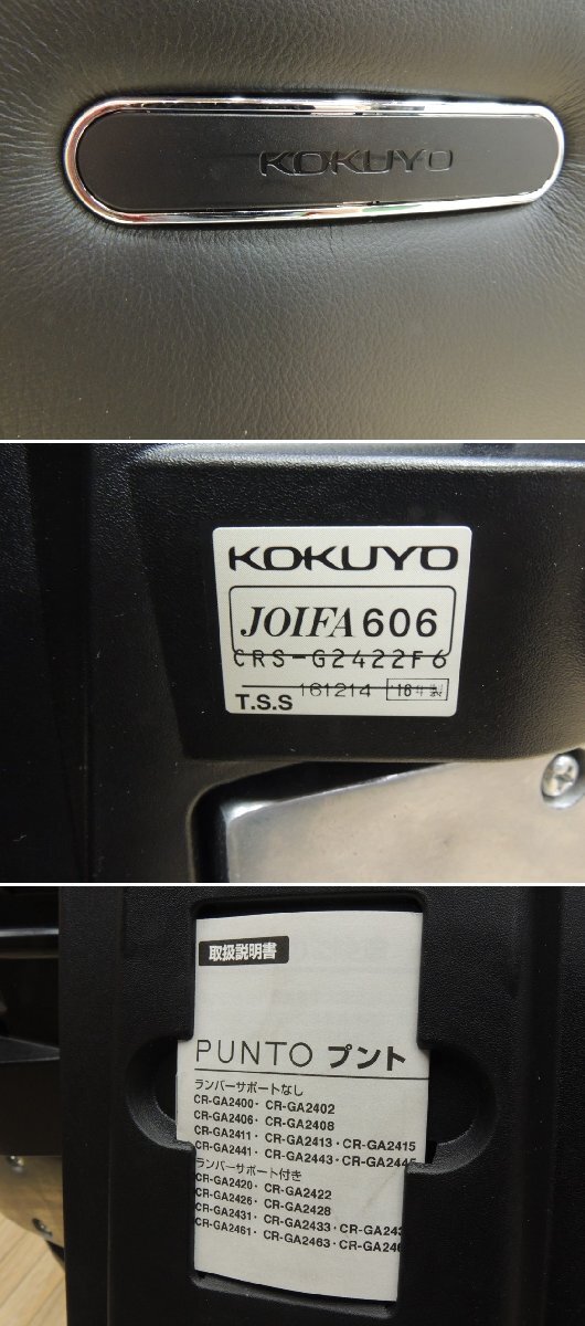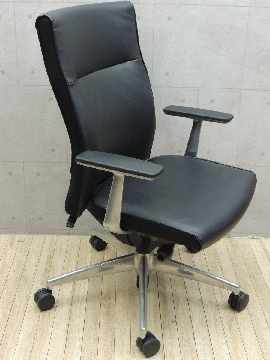 W2005■KOKUYO コクヨ■PUNTO プント■オフィスチェア■ハイバック 革張り■昇降 リクライニング■OAチェア■アルミ肘■キャスター 收藏