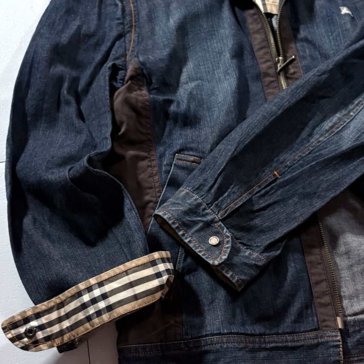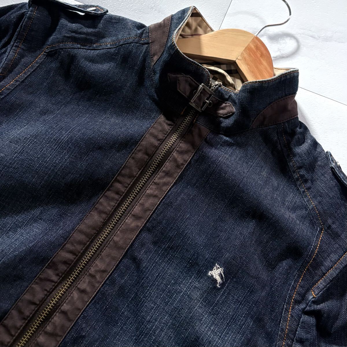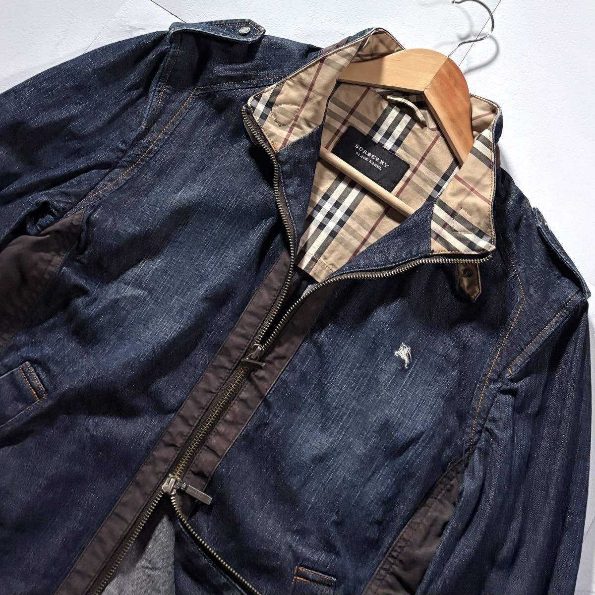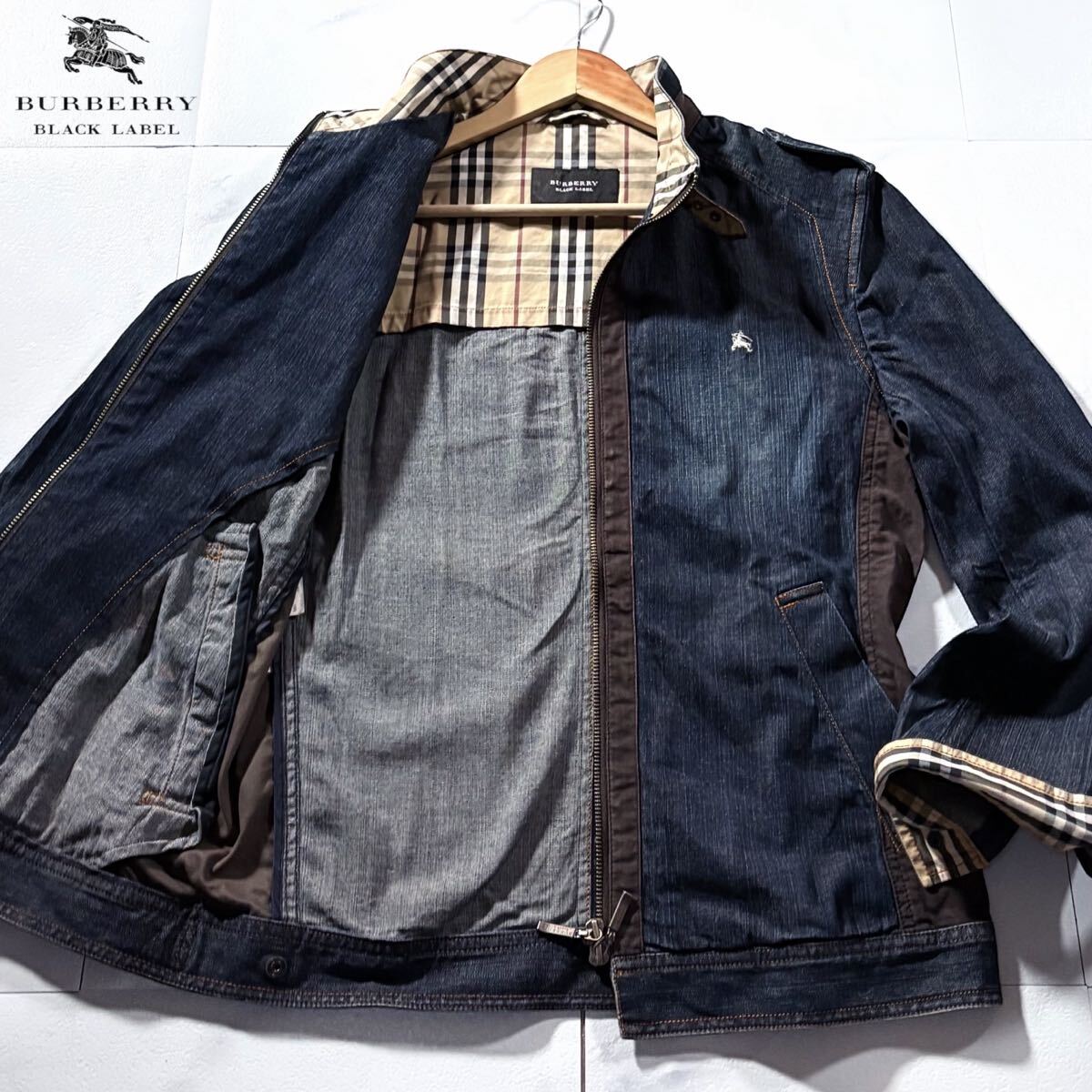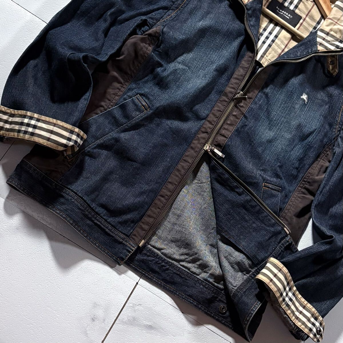 極美品●BURBERRY BLACK LABEL バーバリーブラックレーベル デニムジャケット Gジャン ライダース ダブルジップ ホース刺繍 ノバチェック 收藏