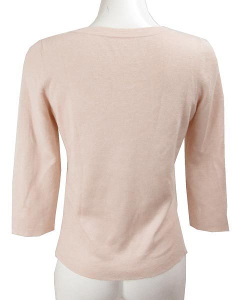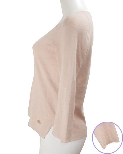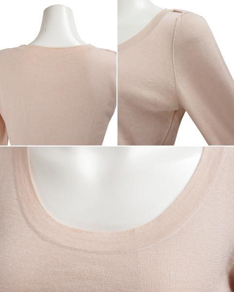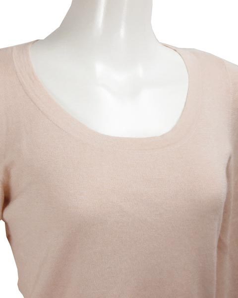 | 肌触りの良いカシミヤシルク混のニット。薄手のお生地になりますので、細身効果があります。ボトムスを選ばずお使い頂けて、フォクシーらしいスタイルが楽しめます。薄いピンクなので、甘くなりすぎず着やすいお色です。 |