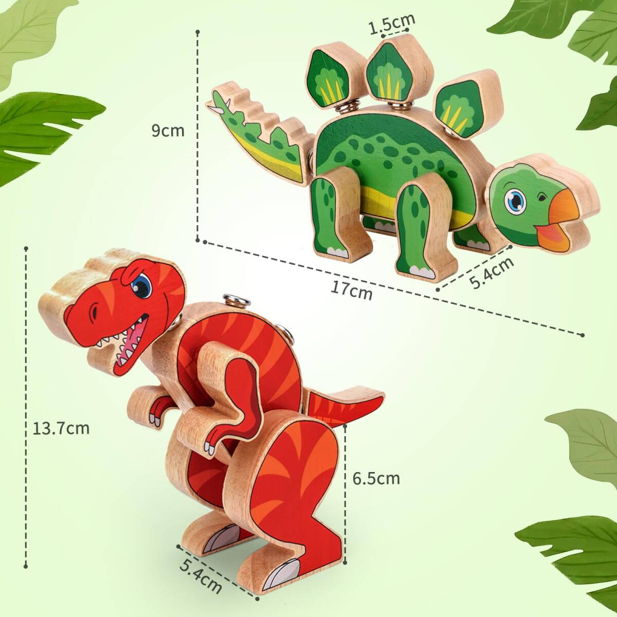 Yangtomo 恐竜 スナップ式 組み立て おもちゃ 木製 分解 恐竜 ブロック セット 知育玩具 STEM モンテッソーリ 教育 微細運動スキル 学習 玩具 木のおもちゃ ギフト 人気 子供 男の子 女の子 誕生日 子供の日 プレゼント