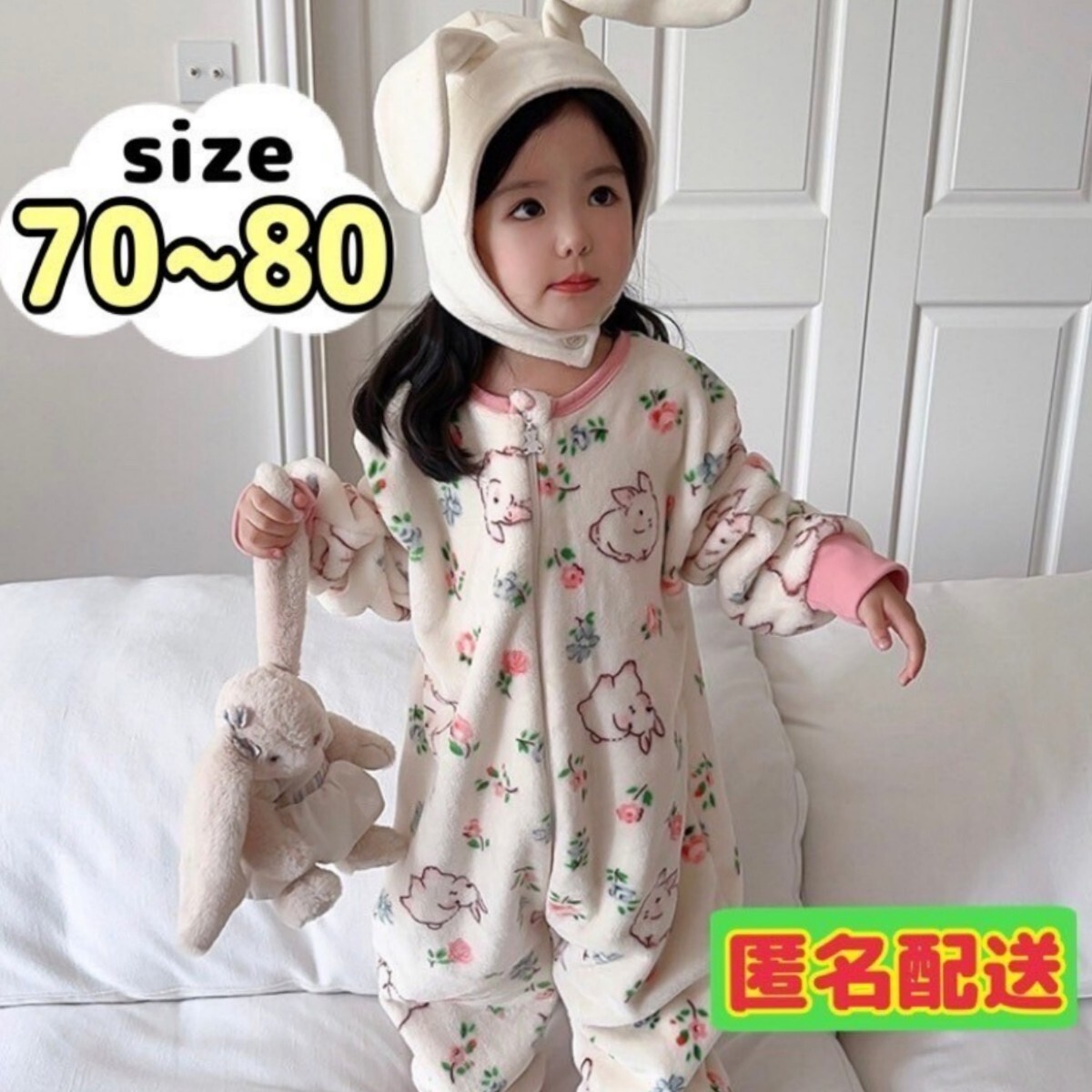 キッズ スリーパー パジャマ ルームウェア もこもこ 70 80 防寒 うさぎ 收藏