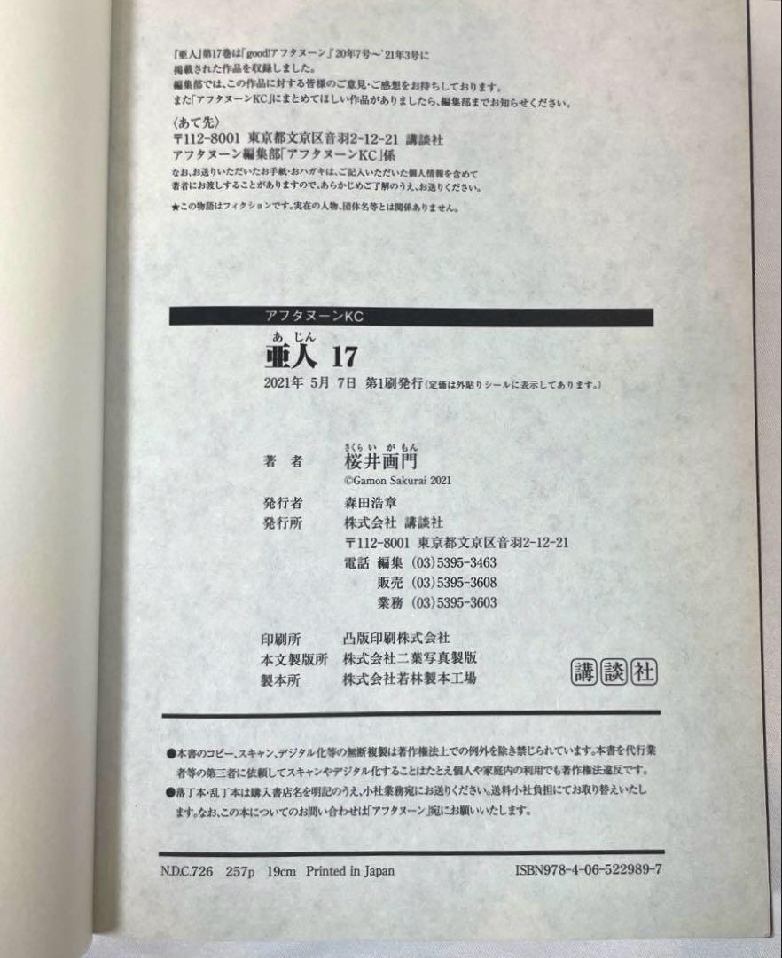 桜井画門先生による大人気SFサスペンス『亜人』の貴重な17巻、初版本です!