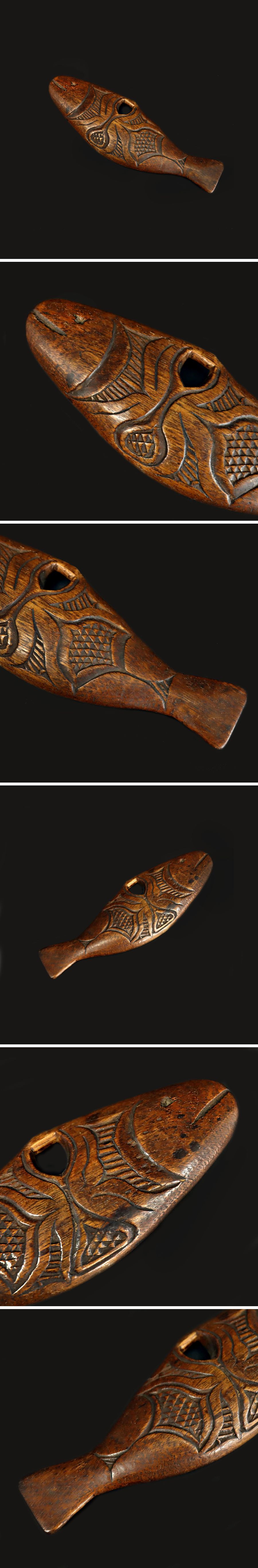 幕末~明治期 アイヌ美術 木彫 差根付 魚彫刻 木工芸 古美術 骨董品 根付 細密彫刻 1617scyN 收藏