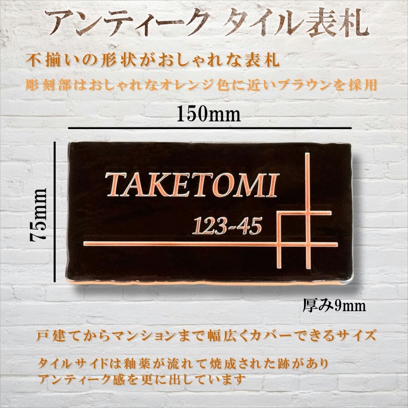 表札 戸建て おしゃれ タイル アンティーク ブラック 最短発送3営業日以内 シンプル モダン 黒 150mm×75mm×9mm 收藏