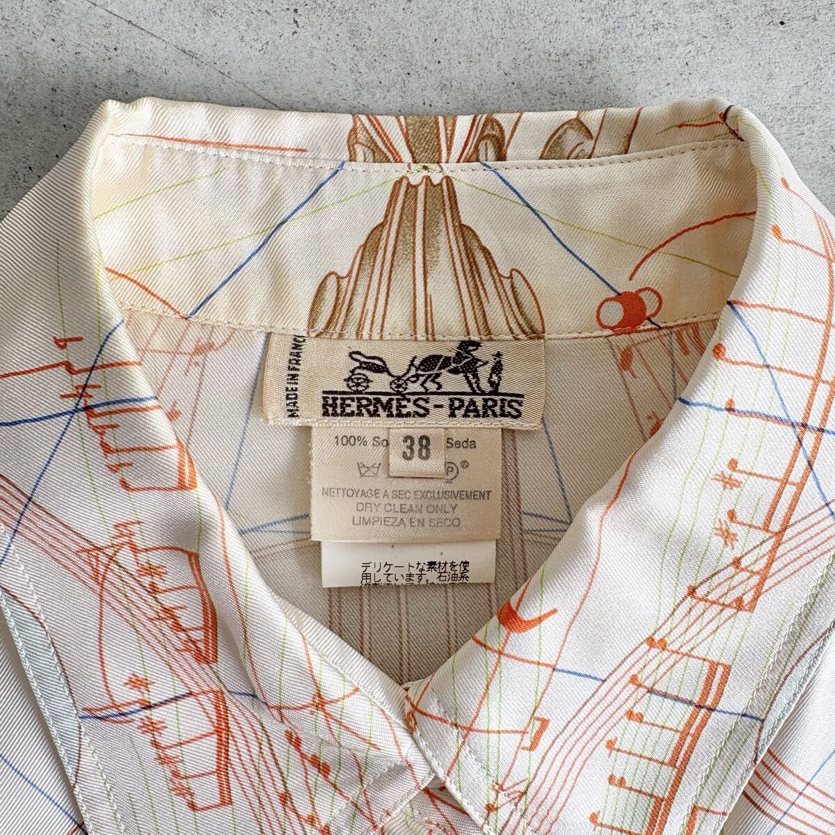 HERMES 球体の奏でる音楽 半袖シルクシャツ 38 エルメス La Musique des Spheres カレ スカーフ柄 收藏