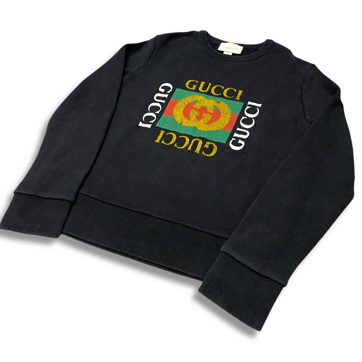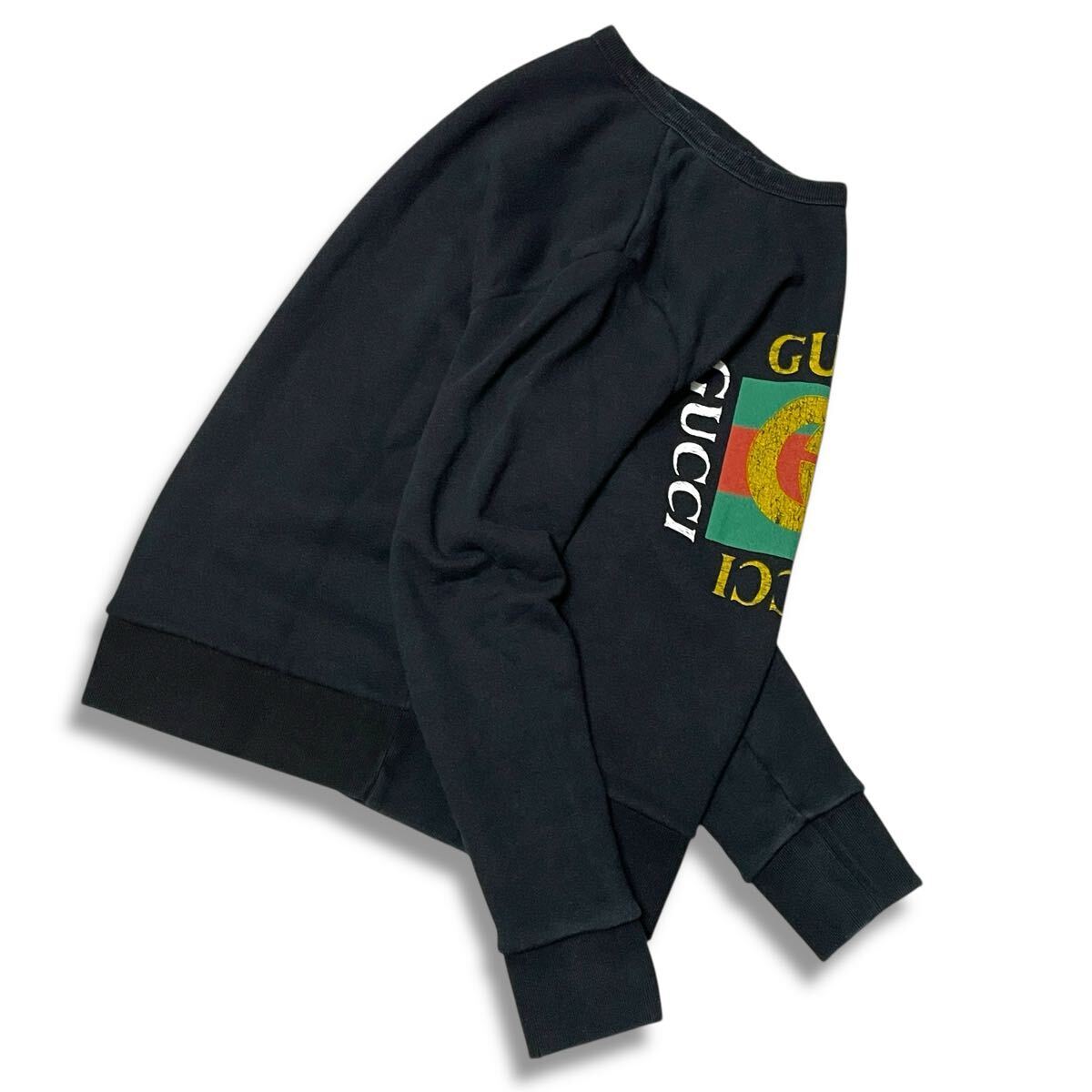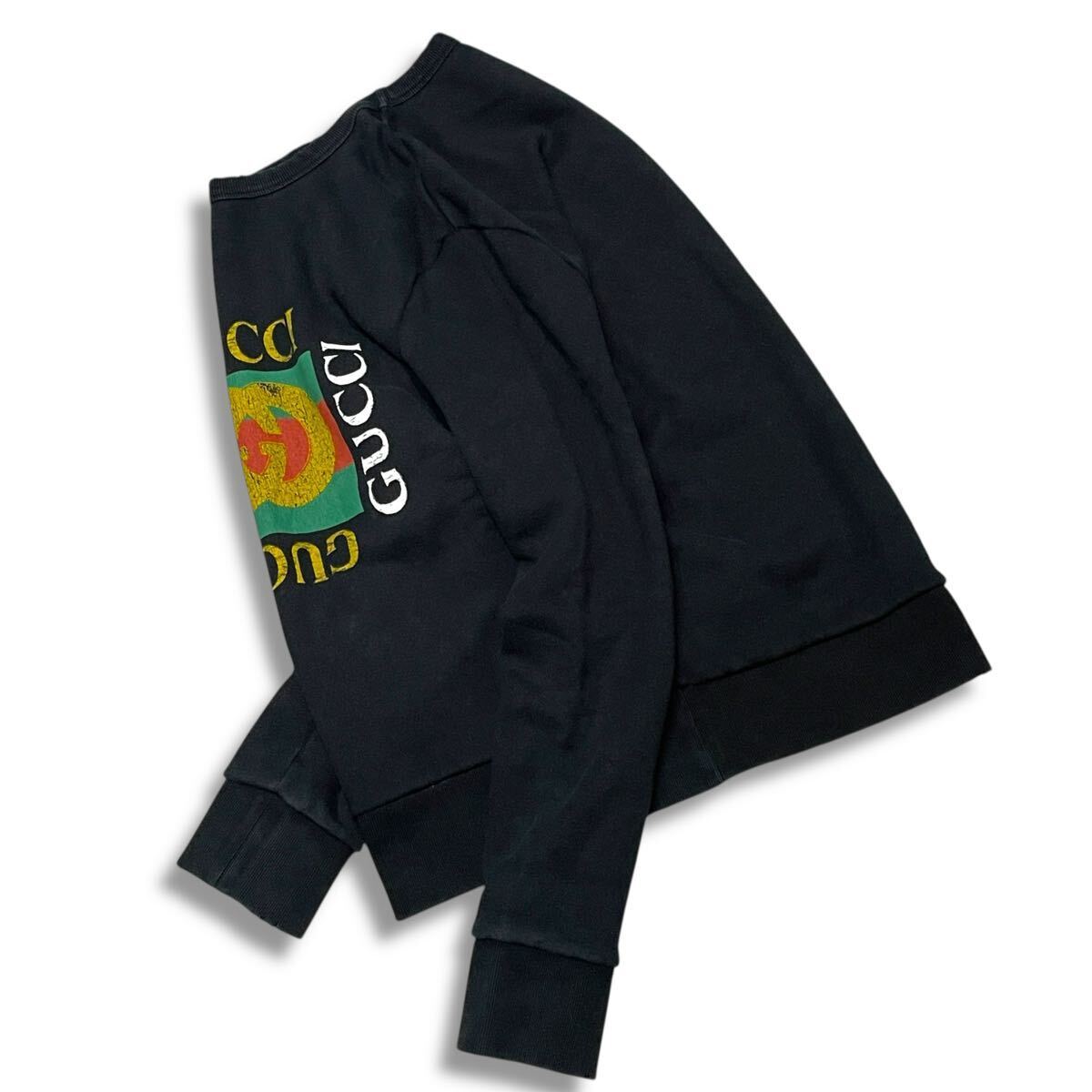 46 国内正規品 GUCCI グッチ 454569 Vintage LOGO sweatshirt ヴィンテージ ロゴ クルーネック スウェット トレーナー ダメージ加工 XS 收藏