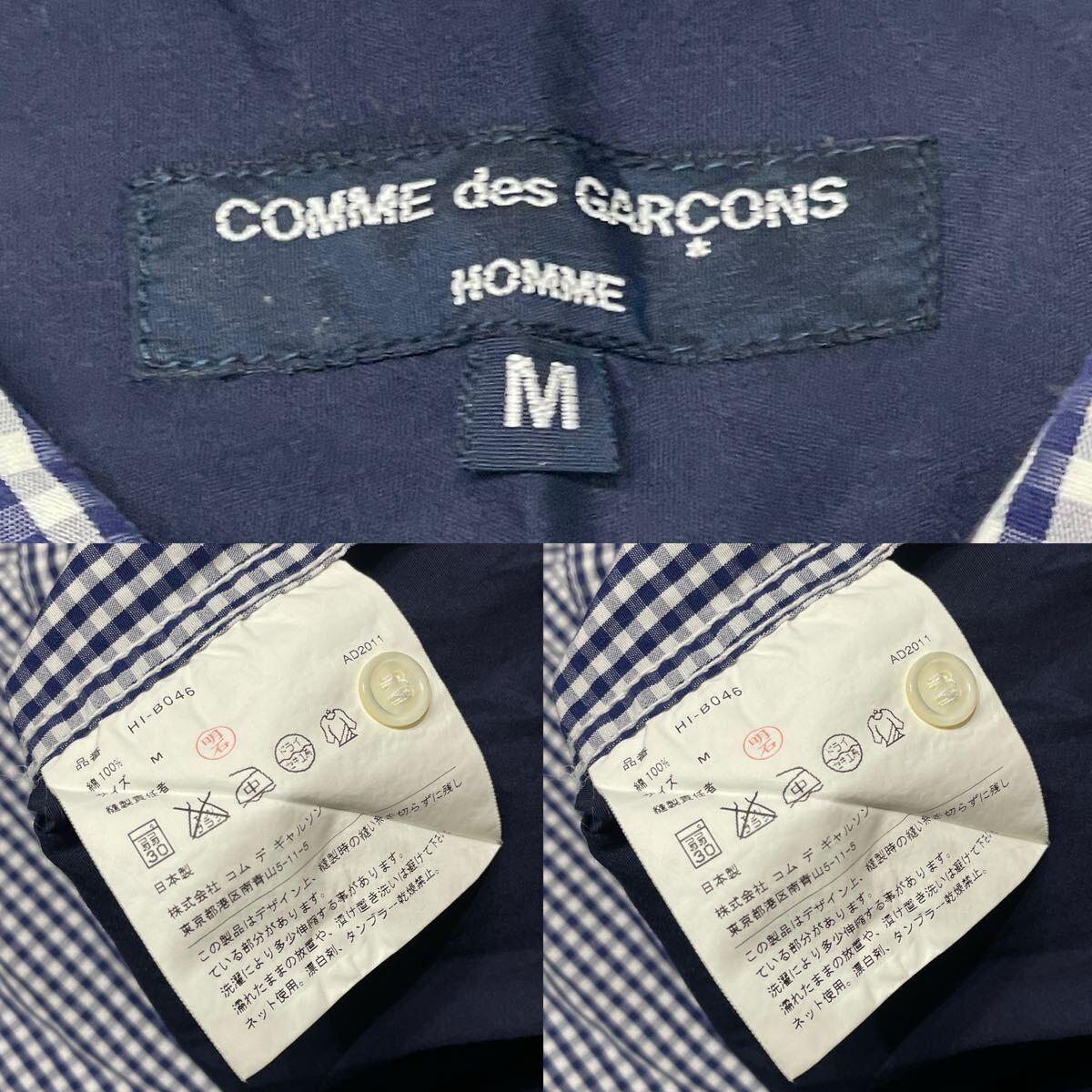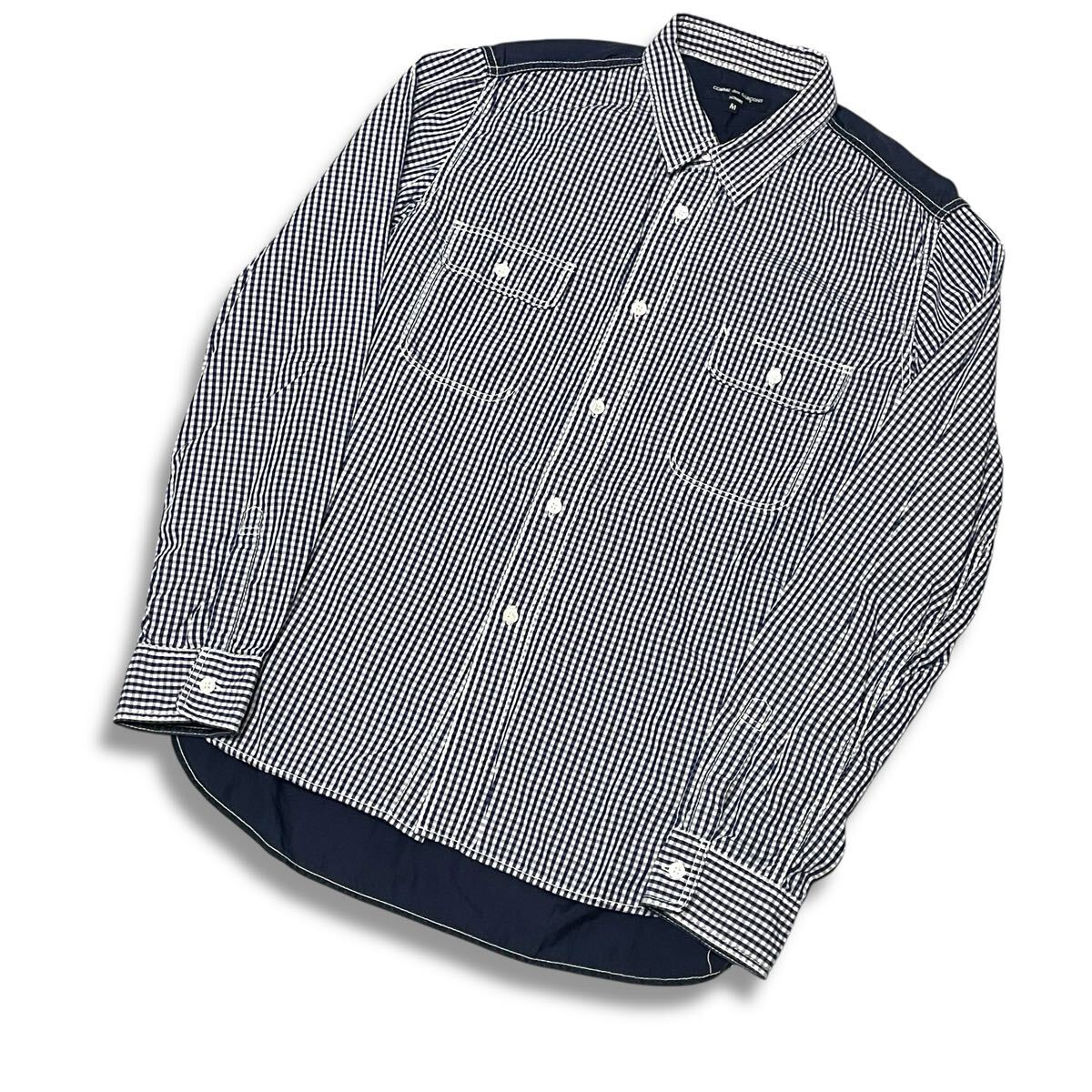 18 正規品 Comme des Garcons HOMME コムデギャルソンオム ギンガムチェック 長袖コットン ドレスシャツ M ブルー系 メンズ 收藏