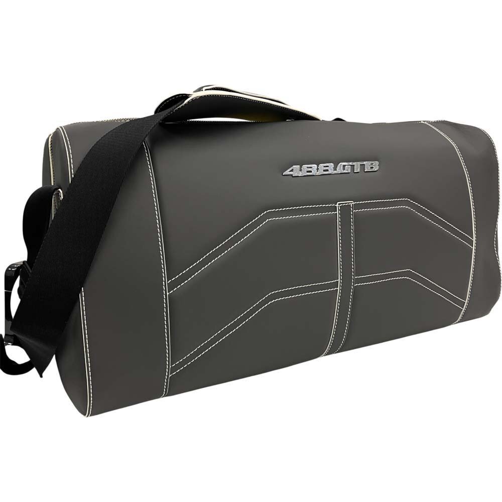 南店25-3560【極美品】フェラーリ 488GTB ボストンバッグ グレー ホワイトステッチ 旅行カバン 希少 限定 大容量 灰色 白 收藏
