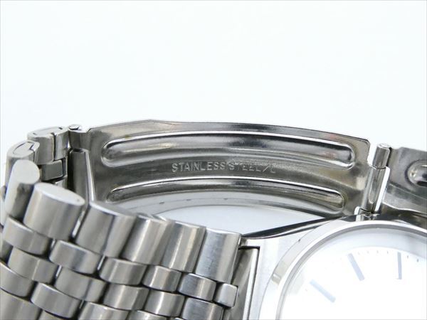 | ★商品★ ・メンズ腕時計 ★ブランド★ ・SEIKO/セイコー ★モデル★ ・SPIRIT/スピリット ★型番★ ・5M23-6A40 ★文字盤色★ ・シルバー ★ムーブメント★ ・AGS (クォーツ) ★素材★ ・ステンレススチール ★サイズ★ ・ケース:(約)36mm ※リューズ、ボタン部分を除く ・ラグ幅:(約)18mm ・腕周り:(約)16.5cm ★状態★ ・時計を振ると動作しますが、すぐに止まってしまう状態となります。 ・リューズ操作での時刻、日付、曜日調節に問題は見られません。 <ケース> ・使用に伴う擦り傷、多少の汚れが見られます。 <風防> ・目立った傷は見られませんが、汚れの見られる箇所がございます。 ・内側に塵の付着している箇所がございます。 <文字盤> ・肉眼で確認する限り、腐食や変色は見られません。 ・塵の付着している箇所がございます。 <ベルト> ・使用に伴う擦り傷、伸び、汚れが見られます。 ※備考※ 商品状態に関しては、あくまでも当方の見立てとなります。 程度には個人差がございますので、商品画像を良くご覧になられた上でのご入札お待ちしております。 また動作が安定しない為、ジャンク品での出品となります。 動作に関する保証は、一切致しませんので予めご了承下さいませ。 |