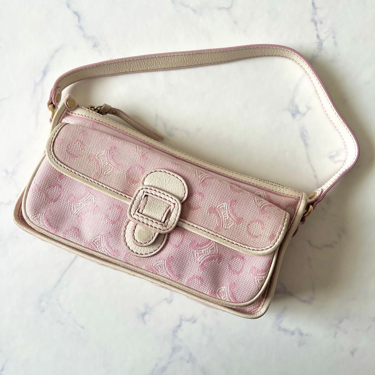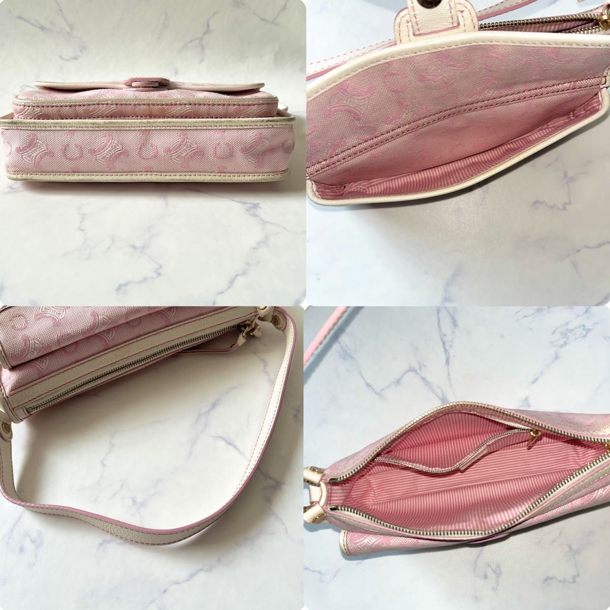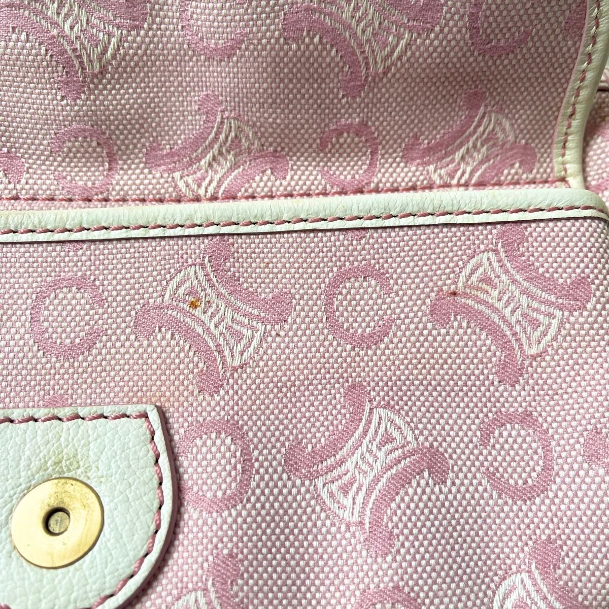 CELINE セリーヌ ワンショルダーバッグ アクセサリーポーチ マカダム トリオンフ キャンバス レザー 本革 ピンク ホワイト 收藏