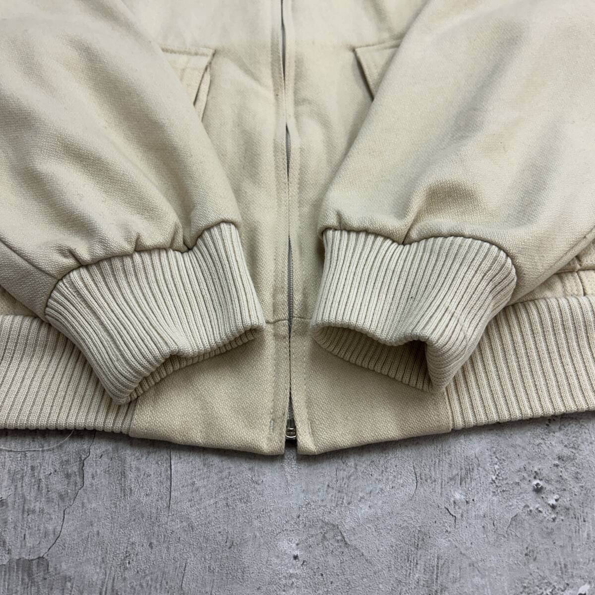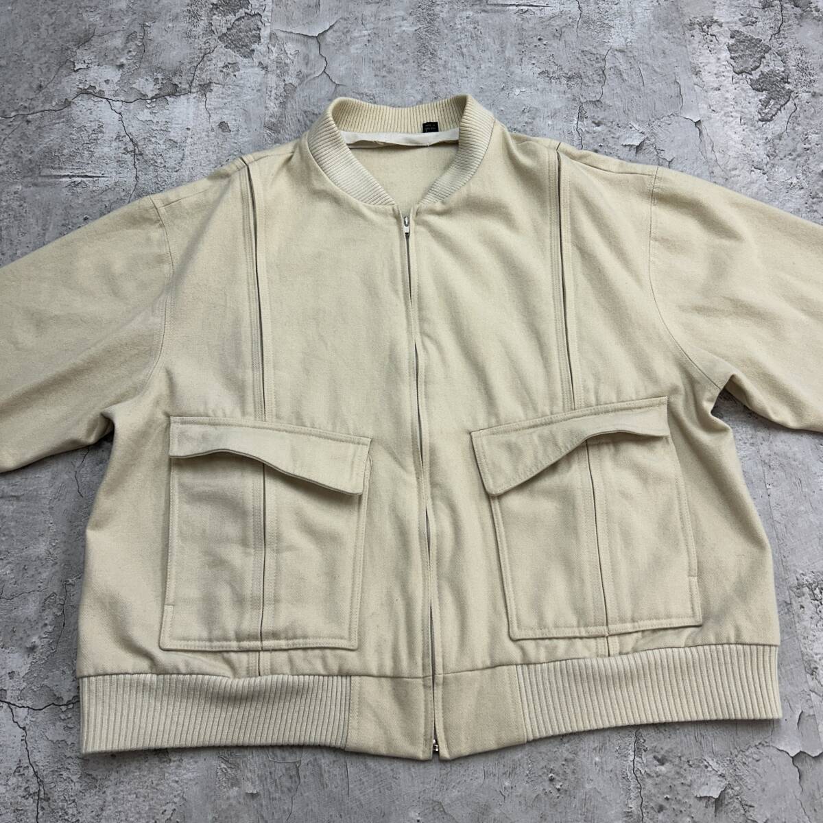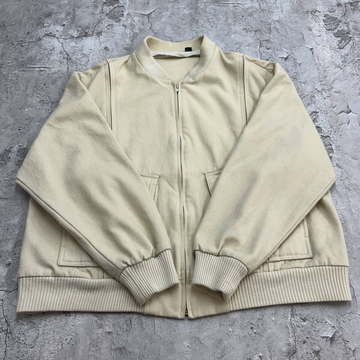 80s 香港製 オールドデザイン トップス 長袖 ウールブルゾン 古着 アイボリー クリーム色 XL相当 收藏