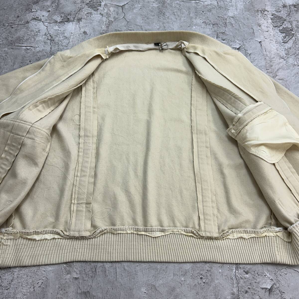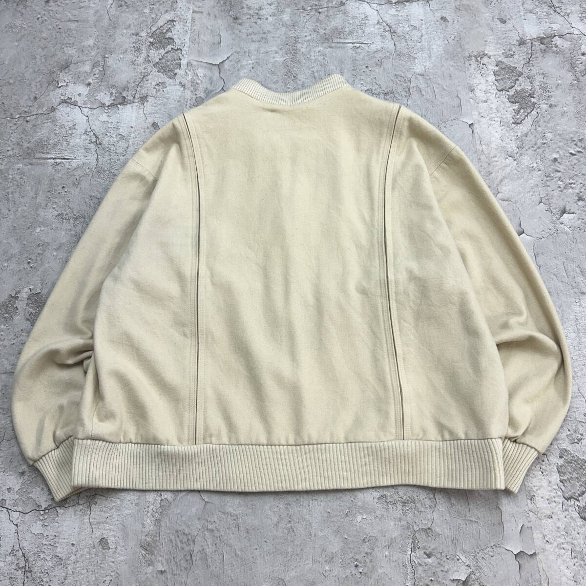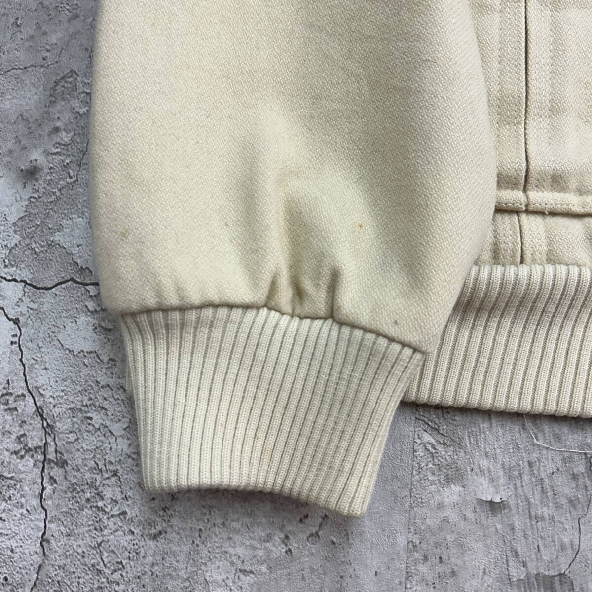 80s 香港製 オールドデザイン トップス 長袖 ウールブルゾン 古着 アイボリー クリーム色 XL相当 收藏